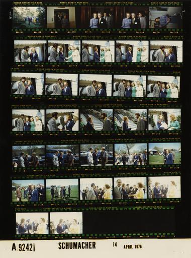 | Keywords: Ford A9242 NLGRF photo contact sheet (1976-04-13)(Gerald Ford Library).jpg White House Photographic Office WHPO is housed at the Gerald R Ford Presidential Library a branch of the National Archives and Records Administration NARA <br/><br/> This file is a 200 dpi photo contact sheet having images from roll of film A9242 of the August 9 1974 - January 20 1977 Gerald R Ford White House Photographic Office Series A0001-A9999 and B0001-B2886 photographs <br/><br/> The date on the photo contact sheet is the date the roll of film was processed not necessarily the date the photographs were taken See table below for additional details 1976-04-13 Gerald R Ford Presidential Library Image http //www fordlibrarymuseum gov/library/whphotos/A9242_NLGRF jpg A9242_NLGRF jpg from http //www fordlibrarymuseum gov/library/whphotos/19760413whpo pdf White House Photographs April 13 1976 of the http //www fordlibrarymuseum gov/Library/whphotos/whpo asp White House Photographic Collection page White House Photographic Office WHPO <br/> Creator David Hume Kennerly PD-USGov Institution Institution Gerald R Ford Presidential Library Table wikitable sortable + Photo contact sheet A9242 U S President Ford Administration Gerald R Ford Library Frame s Tone Subject proper Subject generic Names Geographic Location Photographer Date - 1 BW Q A Session with Members of American Society of Newspaper Editors long view GRF at podium large crowd gathered;leafy trees GRF Editors Secret Service Rose Garden Kennerly 1976-04-13 - 2 BW Reception for Members of American Society of Newspaper Editors exiting elevator GRF Betty Ford State Floor-Elevator Kennerly 1976-04-13 - 3-4 BW Reception for Members of American Society of Newspaper Editors standing together in doorway Betty Ford Unidentified Man Secret Service State Floor-Elevator Kennerly 1976-04-13 - 6-20 Color First Lady's Visit to the New White House Visitors' Waiting Area-Departing For; Greeting White House Visitors handshaking posing next to awning; man with beard;all not in every frame Betty Ford Unidentified Man 2 Women North Entrance Schumacher 1976-04-14 - 21-23 Color First Lady's Visit to the New White House Visitors' Waiting Area-Departing For; National Park Service NPS Ranger in Charge of Visitor's Waiting Area; Director of the Visitors' Office Farrell standing by limousine handshaking Betty Ford Ranger Joe Lawler Mike Farrell South Driveway Schumacher 1976-04-14 - 24-32 Color First Lady's Visit to the New White House Visitors' Waiting Area-Departing For; National Park Service NPS Ranger in Charge of Visitor's Waiting Area; Director of the Visitors' Office Farrell walking on grounds Ranger pointing greeting others; Farrell 29 ; all not in evert frame Betty Ford Mike Farrell Ranger Joe Lawler Military Secret Service Crowd Helen Thomas Weidenfeld Washington DC The Ellipse Schumacher 1976-04-14 Gerald R Ford Presidential Library and Museum-cooperation PD-USGov Contact sheets by the Ford White House April 1976 Photographs by David Hume Kennerly from 1976 |