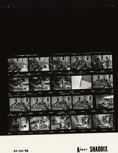 | Keywords: Ford A9297 NLGRF photo contact sheet (1976-04-20)(Gerald Ford Library).jpg  White House Photographic Office WHPO is housed at the Gerald R Ford Presidential Library a branch of the National Archives and Records Administration NARA <br/><br/> This file is a 200 dpi photo contact sheet having images from roll of film A9297 of the August 9 1974 - January 20 1977 Gerald R Ford White House Photographic Office Series A0001-A9999 and B0001-B2886 photographs <br/><br/> The date on the photo contact sheet is the date the roll of film was processed not necessarily the date the photographs were taken See table below for additional details 1976-04-20 Gerald R Ford Presidential Library Image http //www fordlibrarymuseum gov/library/whphotos/A9297_NLGRF jpg A9297_NLGRF jpg from http //www fordlibrarymuseum gov/library/whphotos/19760420whpo pdf White House Photographs April 20 1976 of the http //www fordlibrarymuseum gov/Library/whphotos/whpo asp White House Photographic Collection page White House Photographic Office WHPO - Shaddix PD-USGov Institution Institution Gerald R Ford Presidential Library Table wikitable sortable + Photo contact sheet A9297 U S President Ford Administration Gerald R Ford Library Frame s Tone Subject proper Subject generic Names Geographic Location Photographer Date - 6-19 BW Bicentennial Presentation to White House Coordinator for Bicentennial Affairs by Students in the Pembroke History Club standing on steps; presenting eagle and cutting board Milt Mitler Students North Entrance Shaddix 1976-04-20 - 20-25 BW White House Residence Staff Golf Awards Display; White House Wood-Workers and Carpenters talking on phone; standing at electric saw; standing by display of golf awards for White House; Residence Staff; all not in every frame Unidentified White House Staff Carpenters Unidentified Office and Wood-working Shop Shaddix 1976-04-20 Gerald R Ford Presidential Library and Museum-cooperation PD-USGov Contact sheets by the Ford White House April 1976  |