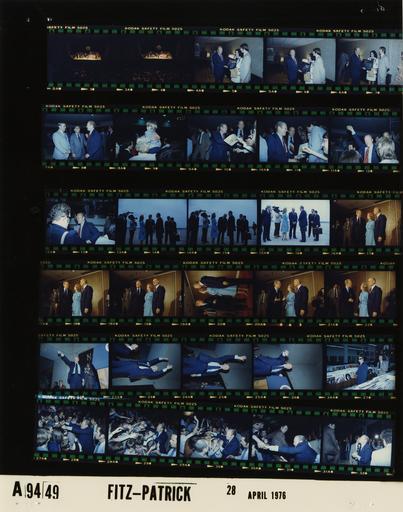 | Keywords: Ford A9449 NLGRF photo contact sheet (1976-04-29)(Gerald Ford Library).jpg White House Photographic Office WHPO is housed at the Gerald R Ford Presidential Library a branch of the National Archives and Records Administration NARA <br/><br/> This file is a 200 dpi photo contact sheet having images from roll of film A9449 of the August 9 1974 - January 20 1977 Gerald R Ford White House Photographic Office Series A0001-A9999 and B0001-B2886 photographs <br/><br/> The date on the photo contact sheet is the date the roll of film was processed not necessarily the date the photographs were taken See table below for additional details 1976-04-29 Gerald R Ford Presidential Library Image http //www fordlibrarymuseum gov/library/whphotos/A9449_NLGRF jpg A9449_NLGRF jpg from http //www fordlibrarymuseum gov/library/whphotos/19760429whpo pdf White House Photographs April 29 1976 of the http //www fordlibrarymuseum gov/Library/whphotos/whpo asp White House Photographic Collection page White House Photographic Office WHPO - Fitz-Patrick PD-USGov Institution Institution Gerald R Ford Presidential Library Table wikitable sortable + Photo contact sheet A9449 U S President Ford Administration Gerald R Ford Library Frame s Tone Subject proper Subject generic Names Geographic Location Photographer Date - 3-4 Color Primary Campaign Trip to Texas; Baylor University Remarks Broadcast Live on Television -Waco Texas long shots of GRF at podium platform guests seated; audience in foreground GRF Platform Guests Audience Waco TX Baylor University Fitz-Patrick 1976-04-29 - 5-7 Color Primary Campaign Trip to Texas; Departing from Baylor University Remarks - Waco Texas man and woman present GRF with framed item; mingling; GRF in red tie GRF Unidentified Man Woman Keiser Others Waco TX Baylor University Fitz-Patrick 1976-04-29 - 8-13 Color Primary Campaign Trip to Texas; Reception for Texas PFC Workers Republican Leaders and Delegates -Waco Texas departing handshaking GRF Crowd Waco TX Waco Convention Center Fitz-Patrick 1976-04-29 - 14-16 Color Primary Campaign Trip to Texas-Airport Arrival; Dallas Cowboys Football Coach standing on tarmac talking; camera shooting GRF Mr Mrs Tom Landry; Sen John Tower Media Others Dallas TX Love Field Fitz-Patrick 1976-04-29 - 17-22 Color Primary Campaign Trip to Texas-Press Q A; Dallas Cowboys Football Coach GRF at microphone others standing against wall GRF Tom Landry Dallas TX Love Field-Holding Room Fitz-Patrick 1976-04-29 - 23-26 Color Primary Campaign Trip to Texas-North Park Shopping Center Mall Remarks GRF onstage waving GRF Unidentified Man Dallas TX North Park Shopping Mall Fitz-Patrick 1976-04-29 - 27 Color Primary Campaign Trip to Texas-North Park Shopping Center Mall looking at Joe Cocker album in a record store Unidentified Men Dallas TX North Park Shopping Mall Fitz-Patrick 1976-04-29 - 38-32 Color Primary Campaign Trip to Texas-North Park Shopping Center Mall-departing from GRF works crowd GRF Crowd Dallas TX North Park Shopping Mall Fitz-Patrick 1976-04-29 Gerald R Ford Presidential Library and Museum-cooperation PD-USGov Contact sheets by the Ford White House April 1976 |