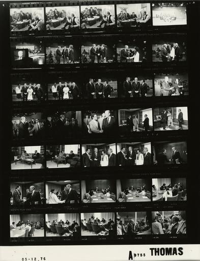 | Keywords: Ford A9755 NLGRF photo contact sheet (1976-05-12)(Gerald Ford Library).jpg White House Photographic Office WHPO is housed at the Gerald R Ford Presidential Library a branch of the National Archives and Records Administration NARA <br/><br/> This file is a 200 dpi photo contact sheet having images from roll of film A9755 of the August 9 1974 - January 20 1977 Gerald R Ford White House Photographic Office Series A0001-A9999 and B0001-B2886 photographs <br/><br/> The date on the photo contact sheet is the date the roll of film was processed not necessarily the date the photographs were taken See table below for additional details 1976-05-12 Gerald R Ford Presidential Library Image http //www fordlibrarymuseum gov/library/whphotos/A9755_NLGRF jpg A9755_NLGRF jpg from http //www fordlibrarymuseum gov/library/whphotos/19760512whpo pdf White House Photographs May 12 1976 of the http //www fordlibrarymuseum gov/Library/whphotos/whpo asp White House Photographic Collection page White House Photographic Office WHPO - Thomas PD-USGov Institution Institution Gerald R Ford Presidential Library Table wikitable sortable + Photo contact sheet A9755 U S President Ford Administration Gerald R Ford Library Frame s Tone Subject proper Subject generic Names Geographic Location Photographer Date - 2A-5A BW Primary Campaign Trip to Michigan; Enroute to Michigan; US Representatives and Senator from Michigan MI seated in circle on plane talking; all may not be shown GRF Sen Robert Griffin Reps William Broomfield Marvin Esch Phillip Rupper Garry Brown Elford Cederberg Guy Vander Jagt Edward Hutchinson Enroute AFB to Detroit-Wayne County Metropolitan Airport Air Force One Thomas 1976-05-12 - 6A-7A BW Primary Campaign Trip to Michigan; Taping Television Interview with WXYZ-TV Anchors Kelly and LeGof - Southfield Michigan seated interviewing; GRF on TV monitor in foreground GRF Jack Kelly Jac LeGoff Southfield MI WXYZ-TV Studios - Studio A Thomas 1976-05-12 - 8A-19A BW Primary Campaign Trip to Michigan; Taping Television Interview with WXYZ-TV Anchors Kelly and LeGof; Photo Op - Southfield Michigan standing handshaking; standing together posing; all not in every frame GRF Jack Kelly Jac LeGoff; Doris Biscoe Marilyn Turner Jim Osborn Others Southfield MI WXYZ-TV Studios - Studio A Thomas 1976-05-12 - 20A-21A BW Primary Campaign Trip to Michigan; Personal Time; Chief of Staff; Press Secretary - Southfield Michigan standing talking; Cheney animated GRF Cheney Nessen Southfield MI WXYZ-TV Studios - Holding Room Thomas 1976-05-12 - 22A-23A BW Primary Campaign Trip to Michigan; Personal Time; Chief of Staff; Press Secretary - Southfield Michigan seated on sofa talking; Cheney animated GRF Cheney Southfield MI WXYZ-TV Studios - Holding Room Thomas 1976-05-12 - 24A-25A BW Primary Campaign Trip to Michigan; Personal Time; University of Michigan Football Coach -Southfield Michigan standing talking GRF Mr Mrs Bo Schembechler Jim Osborn Southfield MI WXYZ-TV Studios - Holding Room Thomas 1976-05-12 - 26A-34A BW Primary Campaign Trip to Michigan; Interview with Editorial Board of Detroit Free Press Newspaper; Editor Stroud - Southfield Michigan standing handshaking; seated at table interviewing; various angles and distances; all not in every frame GRF Joe Strout George Neavoll David Cooper Judith Neuman Remer Tyson Judd Arnett Gene Calmen Tony Spina Cameraman Southfield MI WXYZ-TV Studios - Conference Room Thomas 1976-05-12 - 35A-36A BW Primary Campaign Trip to Michigan; Departure from WXYZ-TV Studios - Southfield Michigan standing handshaking outside building GRF Crowd Media Southfield MI WXYZ-TV Studios Thomas 1976-05-12 Gerald R Ford Presidential Library and Museum-cooperation PD-USGov Contact sheets by the Ford White House May 1976 |