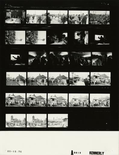 Keywords: Ford A9819 NLGRF photo contact sheet (1976-05-15)(Gerald Ford Library).jpg White House Photographic Office WHPO is housed at the Gerald R Ford Presidential Library a branch of the National Archives and Records Administration NARA <br/><br/> This file is a 200 dpi photo contact sheet having images from roll of film A9819 of the August 9 1974 - January 20 1977 Gerald R Ford White House Photographic Office Series A0001-A9999 and B0001-B2886 photographs <br/><br/> The date on the photo contact sheet is the date the roll of film was processed not necessarily the date the photographs were taken See table below for additional details 1976-05-15 Gerald R Ford Presidential Library Image http //www fordlibrarymuseum gov/library/whphotos/A9819_NLGRF jpg A9819_NLGRF jpg from http //www fordlibrarymuseum gov/library/whphotos/19760515whpo pdf White House Photographs May 15 1976 of the http //www fordlibrarymuseum gov/Library/whphotos/whpo asp White House Photographic Collection page White House Photographic Office WHPO <br/> Creator David Hume Kennerly PD-USGov Institution Institution Gerald R Ford Presidential Library Table wikitable sortable + Photo contact sheet A9819 U S President Ford Administration Gerald R Ford Library Frame s Tone Subject proper Subject generic Names Geographic Location Photographer Date - 1A BW Primary Campaign Whistle-Stop Tour of Michigan-Breakfast Interview with Executives of Booth Newspapers of Michigan seated at table GRF Executives Flint MI Holiday Inn-Banquet Room Kennerly 1976-05-15 - 2A-7A BW Primary Campaign Whistle-Stop Tour of Michigan-US Rep R-MI ; Michigan PFC Chairman Fletcher; Flint PFC Chairman Mottern; 7th Congressional District GOP Chairman Laro; State Rep Edwards Amtrak Station Master Brandeis; US Representative from Michigan MI standing handshaking all may not be shown; GRF working crowd GRF Rep Mrs Elford Cederberg Peter B Fletcher Loraine Mottern David Laro F Robert Edwards Mary Ann Brandeis; Crowd Media Flint MI Amtrak Rail Passenger Station Kennerly 1976-05-15 - 8A-15A BW Primary Campaign Whistle-Stop Tour of Michigan-Aboard Presidential Express; First Lady wearing neck brace BF in neck brace talking to man; GRF looking out window; GRF kissing greeting others on train Betty Ford Don Penny Schneider GRF O'Donnell Others Enroute to Durand or Lansing MI aboard train Kennerly 1976-05-15 - 16A-28A BW Primary Campaign Whistle-Stop Tour of Michigan-Lansing Remarks GRF/BF/ on caboose; GRF making remarks to crowd on pavement GRF Betty Ford Secret Service Others Crowd Lansing MI North Lansing Train Station Kennerly 1976-05-15 Gerald R Ford Presidential Library and Museum-cooperation PD-USGov Contact sheets by the Ford White House May 1976 Photographs by David Hume Kennerly from 1976 Neck braces
