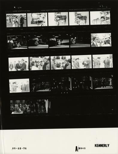 | Keywords: Ford A9945 NLGRF photo contact sheet (1976-05-22)(Gerald Ford Library).jpg White House Photographic Office WHPO is housed at the Gerald R Ford Presidential Library a branch of the National Archives and Records Administration NARA <br/><br/> This file is a 200 dpi photo contact sheet having images from roll of film A9945 of the August 9 1974 - January 20 1977 Gerald R Ford White House Photographic Office Series A0001-A9999 and B0001-B2886 photographs <br/><br/> The date on the photo contact sheet is the date the roll of film was processed not necessarily the date the photographs were taken See table below for additional details 1976-05-22 Gerald R Ford Presidential Library Image http //www fordlibrarymuseum gov/library/whphotos/A9945_NLGRF jpg A9945_NLGRF jpg from http //www fordlibrarymuseum gov/library/whphotos/19760522whpo pdf White House Photographs May 22 1976 of the http //www fordlibrarymuseum gov/Library/whphotos/whpo asp White House Photographic Collection page White House Photographic Office WHPO <br/> Creator David Hume Kennerly PD-USGov Institution Institution Gerald R Ford Presidential Library Table wikitable sortable + Photo contact sheet A9945 U S President Ford Administration Gerald R Ford Library Frame s Tone Subject proper Subject generic Names Geographic Location Photographer Date - 3A-6A BW Trip to Oregon- Airport Arrival-Receiving Bicentennial Letters from Washington Elementary School students standing on tarmac GRF Michell Lorda Dana Wells Others Medford OR Medford-Jackson County Airport Kennerly 1976-05-22 - 7A-11A BW Trip to Oregon- Touring Medford Corporation Lumber Mill MEDCO ;Pres Hogue Plywood Operations Foreman Chance wearing hard hats; watching worker with plywood GRF Russell J Hogue Lee Chance worker Medford OR Medford Corporation Lumber Mill MEDCO Kennerly 1976-05-22 - 12A-18A BW Trip to Oregon- Library Park Rally handshaking standing posing GRF Crowd Unidentified Man Unidentified Woman poilce Medford OR Library Park Kennerly 1976-05-22 - 19A-24A BW Trip to Oregon; World Affairs Council of Oregon Special Forum; Remarks; WAC Pres Stoel - Portland Oregon GRF onstage at podium dark room audience seated; view of audience wheelchair GRF Audience Caroline Stoel Portland OR Lewis and Clark College Kennerly 1976-05-22 Gerald R Ford Presidential Library and Museum-cooperation PD-USGov Contact sheets by the Ford White House May 1976 Photographs by David Hume Kennerly from 1976 |