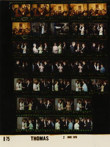 Keywords: Ford B0075 NLGRF photo contact sheet (1976-06-02)(Gerald Ford Library).jpg White House Photographic Office WHPO is housed at the Gerald R Ford Presidential Library a branch of the National Archives and Records Administration NARA <br/><br/> This file is a 200 dpi photo contact sheet having images from roll of film B0075 of the August 9 1974 - January 20 1977 Gerald R Ford White House Photographic Office Series A0001-A9999 and B0001-B2886 photographs <br/><br/> The date on the photo contact sheet is the date the roll of film was processed not necessarily the date the photographs were taken See table below for additional details 1976-06-02 Gerald R Ford Presidential Library Image http //www fordlibrarymuseum gov/library/whphotos/B0075_NLGRF jpg B0075_NLGRF jpg from http //www fordlibrarymuseum gov/library/whphotos/19760602whpo pdf White House Photographs June 2 1976 of the http //www fordlibrarymuseum gov/Library/whphotos/whpo asp White House Photographic Collection page White House Photographic Office WHPO - Thomas PD-USGov Institution Institution Gerald R Ford Presidential Library Table wikitable sortable + Photo contact sheet B0075 U S President Ford Administration Gerald R Ford Library Frame s Tone Subject proper Subject generic Names Geographic Location Photographer Date - 5A-6A Color State Dinner Held in Honor of the King and Queen of Spain GRF standing offering toast; others seated; all not in frames; formal wear GRF Betty Ford King Juan Carlos I Queen Sofia Guests State Dining Room Thomas 1976-06-02 - 7A-10A Color State Dinner Held in Honor of the King and Queen of Spain Juan Carlos and Interpreter standing offering toast; others seated; various angles and distances; all not in frames; formal wear GRF Betty Ford King Juan Carlos I Queen Sofia Interpreter Guests State Dining Room Thomas 1976-06-02 - 11A Color Coffee Following State Dinner Held in Honor of the King and Queen of Spain standing talking; Queen holding cup and saucer; formal wear GRF Queen Sofia Blue Room Thomas 1976-06-02 - 12A-15A Color Coffee Following State Dinner Held in Honor of the King and Queen of Spain standing talking; Queen holding cup and saucer; various agles and distances; formal wear GRF Queen Sofia Military Aide Blue Room Thomas 1976-06-02 - 16A-17A Color Coffee Following State Dinner Held in Honor of the King and Queen of Spain standing talking; holding cups and saucers; woman laughing hysterically; formal wear Betty Ford King Juan Carlos I Unidentified Woman Blue Room Thomas 1976-06-02 - 18A-20A Color Coffee Following State Dinner Held in Honor of the King and Queen of Spain standing talking; holding cups and saucers; formal wear GRF King Juan Carlos I Unidentified Man Blue Room Thomas 1976-06-02 - 21A-23A Color Coffee Following State Dinner Held in Honor of the King and Queen of Spain standing talking; holding cups and saucers; formal wear GRF Catto Unidentified Woman Blue Room Thomas 1976-06-02 - 24A Color Coffee Following State Dinner Held in Honor of the King and Queen of Spain standing posing; holding cups and saucers; formal wear GRF Unidentified Man Woman Blue Room Thomas 1976-06-02 - 25A-37 Color Receiving Line During State Dinner Held in Honor of the King and Queen of Spain greeting handshaking standing talking; all not in every frame; formal wear GRF Betty Ford King Juan Carlos I Queen Sofia Guests East Room Thomas 1976-06-02 Gerald R Ford Presidential Library and Museum-cooperation PD-USGov Contact sheets by the Ford White House June 1976