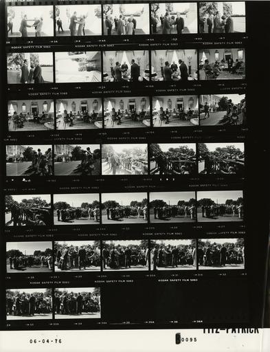 Keywords: Ford B0095 NLGRF photo contact sheet (1976-06-04)(Gerald Ford Library).jpg White House Photographic Office WHPO is housed at the Gerald R Ford Presidential Library a branch of the National Archives and Records Administration NARA <br/><br/> This file is a 200 dpi photo contact sheet having images from roll of film B0095 of the August 9 1974 - January 20 1977 Gerald R Ford White House Photographic Office Series A0001-A9999 and B0001-B2886 photographs <br/><br/> The date on the photo contact sheet is the date the roll of film was processed not necessarily the date the photographs were taken See table below for additional details 1976-06-04 Gerald R Ford Presidential Library Image http //www fordlibrarymuseum gov/library/whphotos/B0095_NLGRF jpg B0095_NLGRF jpg from http //www fordlibrarymuseum gov/library/whphotos/19760604whpo pdf White House Photographs June 4 1976 of the http //www fordlibrarymuseum gov/Library/whphotos/whpo asp White House Photographic Collection page White House Photographic Office WHPO - Fitz-Patrick PD-USGov Institution Institution Gerald R Ford Presidential Library Table wikitable sortable + Photo contact sheet B0095 U S President Ford Administration Gerald R Ford Library Frame s Tone Subject proper Subject generic Names Geographic Location Photographer Date - 3-4 BW Arrival for Farewell Visit by the King and Queen of Spain greeting handshaking embracing laughing GRF Betty Ford King Juan Carlos I Queen Sofia North Portico Fitz-Patrick 1976-06-04 - 5-8 BW Arrival for Farewell Visit by the King and Queen of Spain GRF BF Juan Carlos and Sofia standing talking smiling; others in background; all not in every frame GRF Betty Ford King Juan Carlos I Queen Sofia; Catto Others North Portico Fitz-Patrick 1976-06-04 - 9 BW Arrival for Farewell Visit by the King and Queen of Spain GRF BF Kissinger Juan Carlos and Sofia standing talking smiling; others in background; long shot GRF Betty Ford King Juan Carlos I Queen Sofia Kissinger; Others North Portico Fitz-Patrick 1976-06-04 - 10-11 BW Reception Prior to Farewell by the King and Queen of Spain standing talking; BF and Sofia partially obscured GRF Betty Ford King Juan Carlos I Queen Sofia Kissinger Second Floor - Yellow Oval Room Fitz-Patrick 1976-06-04 - 12-16 BW Reception Prior to Farewell by the King and Queen of Spain seated in semi-circle near fireplace; talking; long shot from across room GRF Betty Ford King Juan Carlos I Queen Sofia Kissinger Second Floor - Yellow Oval Room Fitz-Patrick 1976-06-04 - 17-19 B Following the Departure of the King and Queen of Spain GRF and man standing under canopy talking; agents standing on driveway; crowd on lawn on right of frame; long shots GRF Unidentified Man; Secret Service Crowd South Driveway; South Portico Fitz-Patrick 1976-06-04 - 20-23 B Impromptu Press Conference Following the Departure of the King and Queen of Spain standing talking; GRF on driveway media on right of frame behind rope GRF Media South Driveway Fitz-Patrick 1976-06-04 - 24-34 B Impromptu Press Conference Following the Departure of the King and Queen of Spain standing talking; GRF on driveway back to camera; Washington Monument in background; various distances GRF Media South Driveway Fitz-Patrick 1976-06-04 Gerald R Ford Presidential Library and Museum-cooperation PD-USGov Contact sheets by the Ford White House June 1976 |
