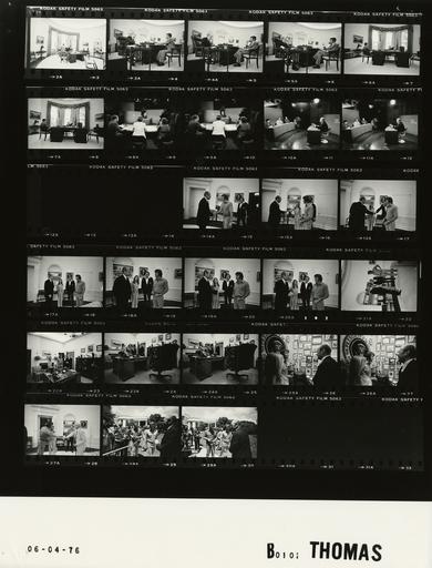 Keywords: Ford B0102 NLGRF photo contact sheet (1976-06-05)(Gerald Ford Library).jpg White House Photographic Office WHPO is housed at the Gerald R Ford Presidential Library a branch of the National Archives and Records Administration NARA <br/><br/> This file is a 200 dpi photo contact sheet having images from roll of film B0102 of the August 9 1974 - January 20 1977 Gerald R Ford White House Photographic Office Series A0001-A9999 and B0001-B2886 photographs <br/><br/> The date on the photo contact sheet is the date the roll of film was processed not necessarily the date the photographs were taken See table below for additional details 1976-06-05 Gerald R Ford Presidential Library Image http //www fordlibrarymuseum gov/library/whphotos/B0102_NLGRF jpg B0102_NLGRF jpg from http //www fordlibrarymuseum gov/library/whphotos/19760605whpo pdf White House Photographs June 5 1976 of the http //www fordlibrarymuseum gov/Library/whphotos/whpo asp White House Photographic Collection page White House Photographic Office WHPO - Thomas PD-USGov Institution Institution Gerald R Ford Presidential Library Table wikitable sortable + Photo contact sheet B0102 U S President Ford Administration Gerald R Ford Library Frame s Tone Subject proper Subject generic Names Geographic Location Photographer Date - 2A-7A B Meeting with Political Consultant seated at desk talking; GRF holding smoking pipe; various angles and distances GRF Don Penny Schneider Oval Office Thomas 1976-06-05 - 8A-11A B Taping of Face the Nation -United Press International UPI Correspondent; CBS News Correspondents seated; various angles and distances GRF Helen Thomas Bob Schieffer George Herman Washington DC Columbia Broadcasting System CBS Studio Thomas 1976-06-05 - 12A-13A B Thomas 1976-06-05 - 14A-21A B Meeting with American Singer and Musician; Agent Friend of Agent greeting handshaking standing talking; various angles and distances GRF Glenn Campbell Roger Adams Sarah Davis Oval Office Thomas 1976-06-05 - 22A-24A B Meeting with American Singer and Musician; Agent Friend of Agent standing talking; various angles and distances GRF Glenn Campbell Roger Adams Sarah Davis President's Private Office Thomas 1976-06-05 - 25A-26A B Meeting with American Singer and Musician; Friend of Campbell's Agent talking looking at framed items on wall; medium range GRF Glenn Campbell Sarah Davis President's Private Office Thomas 1976-06-05 - 27A B Meeting with American Singer and Musician; Agent Friend of Agent Campbell and Buchen greeting handshaking; others in background Glenn Campbell Roger Adams Sarah Davis Buchen Oval Office Thomas 1976-06-05 - 28A-29A B Photo Opportunity with Media Prior to Leaving for Burning Tree Country Club GRF and Campbell talking to media laughing; Nessen and others in background GRF Glenn Campbell Media; Nessen Others Sidewalk between Oval Office and South Driveway Thomas 1976-06-05 Gerald R Ford Presidential Library and Museum-cooperation PD-USGov Contact sheets by the Ford White House June 1976 |