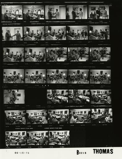 | Keywords: Ford B0215 NLGRF photo contact sheet (1976-06-15)(Gerald Ford Library).jpg  White House Photographic Office WHPO is housed at the Gerald R Ford Presidential Library a branch of the National Archives and Records Administration NARA <br/><br/> This file is a 200 dpi photo contact sheet having images from roll of film B0215 of the August 9 1974 - January 20 1977 Gerald R Ford White House Photographic Office Series A0001-A9999 and B0001-B2886 photographs <br/><br/> The date on the photo contact sheet is the date the roll of film was processed not necessarily the date the photographs were taken See table below for additional details 1976-06-15 Gerald R Ford Presidential Library Image http //www fordlibrarymuseum gov/library/whphotos/B0215_NLGRF jpg B0215_NLGRF jpg from http //www fordlibrarymuseum gov/library/whphotos/19760615whpo pdf White House Photographs June 15 1976 of the http //www fordlibrarymuseum gov/Library/whphotos/whpo asp White House Photographic Collection page White House Photographic Office WHPO - Thomas PD-USGov Institution Institution Gerald R Ford Presidential Library Table wikitable sortable + Photo contact sheet B0215 U S President Ford Administration Gerald R Ford Library Frame s Tone Subject proper Subject generic Names Geographic Location Photographer Date - 4A-5A B standing talking near fireplace; long shot from across room Three Unidentified Men Cabinet Room Thomas 1976-06-15 - 6A-8A B Meeting with Leader of the Progressive Conservative Party of Canada greeting handshaking standing talking GRF Charles Joseph Joe Clark Oval Office Thomas 1976-06-15 - 9A B Meeting with Leader of the Progressive Conservative Party of Canada -Ambassador of Canada to the US greeting handshaking standing talking GRF Jack H Warren Oval Office Thomas 1976-06-15 - 10A-11A B Meeting with Leader of the Progressive Conservative Party of Canada -Ambassador of Canada to the US seated around table near fireplace talking GRF Charles Joseph Joe Clark Jack H Warren Scowcroft Seidman Oval Office Thomas 1976-06-15 - 12A-13A B Meeting with Leader of the Progressive Conservative Party of Canada -Ambassador of Canada to the US Kissinger entering room; Clark and Warren rising; greeting handshaking GRF Charles Joseph Joe Clark Jack H Warren Scowcroft Seidman Kissinger Oval Office Thomas 1976-06-15 - 14A-15A B Meeting with Leader of the Progressive Conservative Party of Canada -Ambassador of Canada to the US seated around table near fireplace talking GRF Charles Joseph Joe Clark Jack H Warren Scowcroft Seidman Kissinger Oval Office Thomas 1976-06-15 - 16A-18A B Meeting with Leader of the Progressive Conservative Party of Canada seated near fireplace talking GRF Charles Joseph Joe Clark Oval Office Thomas 1976-06-15 - 19A-24A B Meeting with Leader of the Progressive Conservative Party of Canada -Ambassador of Canada to the US seated around table near fireplace talking GRF Charles Joseph Joe Clark Jack H Warren Scowcroft Seidman Kissinger Oval Office Thomas 1976-06-15 - 25A B Thomas 1976-06-15 - 26A-36A B Preparatory Meeting for the Economic Summit Meeting in Puerto Rico - Representatives from Great Britain Japan France Germany Italy Canada Unitred States seated around table; talking; various angles and distances; all not in every frame GRF D Mitchell J Hunt A Campbell K Watanabi B Yoshino H Fukada J de Larosiere H Froment-Meurice O Poehl Mueller-Thuns A Jelonek R Ossola S Palumbo M Mondello E Yeo III P Towe I Head W Hood Others Roosevelt Room Thomas 1976-06-15 Gerald R Ford Presidential Library and Museum-cooperation PD-USGov Contact sheets by the Ford White House June 1976 |