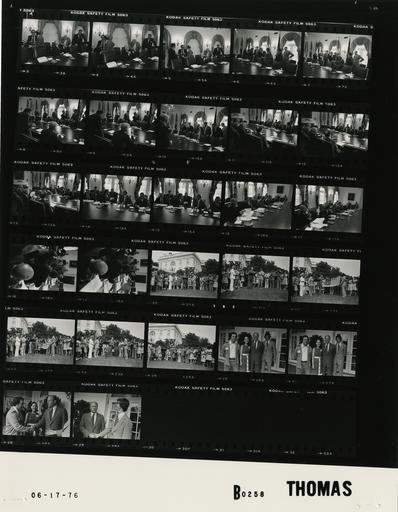 Keywords: Ford B0258 NLGRF photo contact sheet (1976-06-17)(Gerald Ford Library).jpg White House Photographic Office WHPO is housed at the Gerald R Ford Presidential Library a branch of the National Archives and Records Administration NARA <br/><br/> This file is a 200 dpi photo contact sheet having images from roll of film B0258 of the August 9 1974 - January 20 1977 Gerald R Ford White House Photographic Office Series A0001-A9999 and B0001-B2886 photographs <br/><br/> The date on the photo contact sheet is the date the roll of film was processed not necessarily the date the photographs were taken See table below for additional details 1976-06-17 Gerald R Ford Presidential Library Image http //www fordlibrarymuseum gov/library/whphotos/B0258_NLGRF jpg B0258_NLGRF jpg from http //www fordlibrarymuseum gov/library/whphotos/19760617whpo pdf White House Photographs June 17 1976 of the http //www fordlibrarymuseum gov/Library/whphotos/whpo asp White House Photographic Collection page White House Photographic Office WHPO - Thomas PD-USGov Institution Institution Gerald R Ford Presidential Library Table wikitable sortable + Photo contact sheet B0258 U S President Ford Administration Gerald R Ford Library Frame s Tone Subject proper Subject generic Names Geographic Location Photographer Date - 3A-4A B Puerto Rico Economic Summit -Prior to Meeting to Discuss US Position on Issues in Preparation for the International Economic Summit Hyland and Scowcroft standing talking on right of frame Scowcroft's back to camera; Burns seated Usery bending down Dent stranding on right Hyland Scowcroft; Burns Usery Dent Cabinet Room Thomas 1976-06-17 - 5A B Puerto Rico Economic Summit -Prior to Meeting to Discuss US Position on Issues in Preparation for the International Economic Summit Nessen Hyland and Scowcroft standing talking on right of frame Scowcroft's back to camera Hyland smoking cigarette; Burns seated Usery bending down Dent stranding on right Nessen Hyland Scowcroft; Burns Usery Dent Cabinet Room Thomas 1976-06-17 - 6A-7A B Puerto Rico Economic Summit -Prior to Meeting to Discuss US Position on Issues in Preparation for the International Economic Summit standing along side of table; talking in small groups; Kissinger talking to Simon Seidman Porter Sonnenfeldt Richard Darman Kissinger Simon Edwin Yeo Burton Malkiel Cabinet Room Thomas 1976-06-17 - 8A-9A B Puerto Rico Economic Summit -Prior to Meeting to Discuss US Position on Issues in Preparation for the International Economic Summit Burns seated in foreground Dent leaning on back of chair backs to camera; Burns talking to across table to Simon and Kissinger; others standing along side of table; talking in small groups Seidman Porter Sonnenfeldt Richard Darman Kissinger Simon Edwin Yeo Burton Malkiel; Dent Burns Cabinet Room Thomas 1976-06-17 - 10A B Puerto Rico Economic Summit -Prior to Meeting to Discuss US Position on Issues in Preparation for the International Economic Summit Burns standing in foreground; GRF and others standing on opposite side of table GRF Seidman Porter Sonnenfeldt Richard Darman Kissinger Simon Greenspan Edwin Yeo Burton Malkiel Burns Cabinet Room Thomas 1976-06-17 - 11A-13A B Puerto Rico Economic Summit -Meeting to Discuss US Position on Issues in Preparation for the International Economic Summit seated around table; Burns Oneill Usery Dent Scowcroft on opposite side from others GRF Seidman Porter Sonnenfeldt Richard Darman Kissinger Simon Greenspan Edwin Yeo Burton Malkiel Burns Oneill Usery Dent Scowcroft Cabinet Room Thomas 1976-06-17 - 14A-15A B Puerto Rico Economic Summit -Meeting to Discuss US Position on Issues in Preparation for the International Economic Summit GRF Kissinger Simon and Seidman seated at table talking; others in background; medium range GRF Sonnenfeldt Porter Richard Darman Seidman Kissinger Simon Cabinet Room Thomas 1976-06-17 - 16A-17A B Puerto Rico Economic Summit -Meeting to Discuss US Position on Issues in Preparation for the International Economic Summit GRF Kissinger Simon Greenspan and Seidman seated at table talking; others in background; medium range GRF Seidman Kissinger Sonnenfeldt Greenspan Richard Darman Simon Edwin Yeo Burton Malkiel Nessen Raoul-Duval Cabinet Room Thomas 1976-06-17 - 18A-19A B Puerto Rico Economic Summit -Meeting to Discuss US Position on Issues in Preparation for the International Economic Summit GRF Kissinger Simon Greenspan and Seidman seated at table talking; others in background; Seidman and Kissinger's back to camera; medium range GRF Seidman Kissinger Kissinger Simon Greenspan Edwin Yeo Nessen Raoul-Duval Cabinet Room Thomas 1976-06-17 - 20A-25A B Meeting with Teenage Republicans TARS Attending the 8th Annual Teenage Republican Leadership Conference; Director for Youth Affairs standing posing; White House in background; all not in every frame GRF Pamela Powell Teenage Republicans TARS Rose Garden Thomas 1976-06-17 - 26A-27A B Meeting with Teenage Republicans TARS Attending the 8th Annual Teenage Republican Leadership Conference standing posing GRF Two Unidentified Young Men Unidentified Young Woman; Teenage Republicans TARS Colonnade Thomas 1976-06-17 - 28A B Meeting with Teenage Republicans TARS Attending the 8th Annual Teenage Republican Leadership Conference standing talking handshaking GRF Unidentified Young Man Unidentified Young Woman; Teenage Republicans TARS Colonnade Thomas 1976-06-17 - 29A B Meeting with Teenage Republicans TARS Attending the 8th Annual Teenage Republican Leadership Conference standing talking handshaking GRF Unidentified Young Man; Teenage Republicans TARS Colonnade Thomas 1976-06-17 Gerald R Ford Presidential Library and Museum-cooperation PD-USGov Contact sheets by the Ford White House June 1976