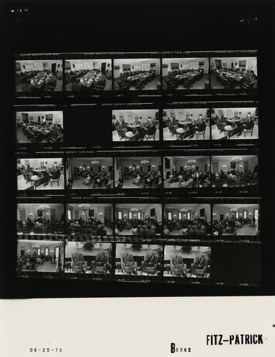 | Keywords: Ford B0362 NLGRF photo contact sheet (1976-06-23)(Gerald Ford Library).jpg White House Photographic Office WHPO is housed at the Gerald R Ford Presidential Library a branch of the National Archives and Records Administration NARA <br/><br/> This file is a 200 dpi photo contact sheet having images from roll of film B0362 of the August 9 1974 - January 20 1977 Gerald R Ford White House Photographic Office Series A0001-A9999 and B0001-B2886 photographs <br/><br/> The date on the photo contact sheet is the date the roll of film was processed not necessarily the date the photographs were taken See table below for additional details 1976-06-23 Gerald R Ford Presidential Library Image http //www fordlibrarymuseum gov/library/whphotos/B0362_NLGRF jpg B0362_NLGRF jpg from http //www fordlibrarymuseum gov/library/whphotos/19760623whpo pdf White House Photographs June 23 1976 of the http //www fordlibrarymuseum gov/Library/whphotos/whpo asp White House Photographic Collection page White House Photographic Office WHPO - Fitz-Patrick PD-USGov Institution Institution Gerald R Ford Presidential Library Table wikitable sortable + Photo contact sheet B0362 U S President Ford Administration Gerald R Ford Library Frame s Tone Subject proper Subject generic Names Geographic Location Photographer Date - 5A-10A BW Briefing on the 1977 Budget with the Board of Trustees of the Tax Foundation Incorporated date and event may be incorrect seated around table talking; various angles and distance; all not in frames GRF Unidentified Group Board of Trustees of the Tax Foundation Incorporated Roosevelt Room Fitz-Patrick 1976-06-23 - 11A BW Fitz-Patrick 1976-06-23 - 12A-15A BW President Harris and Associates Inc ; White House Administrative Assistant seated around desk talking GRF Louis Harris Douglas Smith Oval Office Fitz-Patrick 1976-06-24 - 16A-25A BW Meeting to Discuss Public Opinion Trends Affecting Government Business and Society GRF at lectern speaking; others seated; various angles and distances; all not in every photograph GRF Louis Harris Participants in the Louis Harris Perspective Research Seminar State Dining Room Fitz-Patrick 1976-06-24 - 26A-28A BW US Senator from Wyoming WY seated talking near fireplace GRF Sen Clifford Hansen Oval Office Fitz-Patrick 1976-06-25 Gerald R Ford Presidential Library and Museum-cooperation PD-USGov Contact sheets by the Ford White House June 1976 |