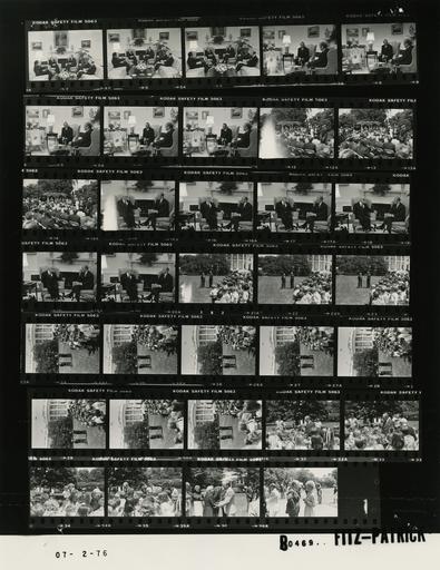 Keywords: Ford B0469 NLGRF photo contact sheet (1976-07-02)(Gerald Ford Library).jpg White House Photographic Office WHPO is housed at the Gerald R Ford Presidential Library a branch of the National Archives and Records Administration NARA <br/><br/> This file is a 200 dpi photo contact sheet having images from roll of film B0469 of the August 9 1974 - January 20 1977 Gerald R Ford White House Photographic Office Series A0001-A9999 and B0001-B2886 photographs <br/><br/> The date on the photo contact sheet is the date the roll of film was processed not necessarily the date the photographs were taken See table below for additional details 1976-07-02 Gerald R Ford Presidential Library Image http //www fordlibrarymuseum gov/library/whphotos/B0469_NLGRF jpg B0469_NLGRF jpg from http //www fordlibrarymuseum gov/library/whphotos/19760702whpo pdf White House Photographs July 2 1976 of the http //www fordlibrarymuseum gov/Library/whphotos/whpo asp White House Photographic Collection page White House Photographic Office WHPO - Fitz-Patrick PD-USGov Institution Institution Gerald R Ford Presidential Library Table wikitable sortable + Photo contact sheet B0469 U S President Ford Administration Gerald R Ford Library Frame s Tone Subject proper Subject generic Names Geographic Location Photographer Date - 4-6 BW Meeting with President-Director General Economic Development Bank of Tunisia; Special Rep of the President of the Tunisian Republic; Former Foreign Minister and Ambassador to US; Son of President of the Tunisian Republic; Ambassador of Tunisia to the US seated neat fireplace talking GRF Habib Bourguiba Jr Ali Hedda Scowcroft Oval Office Fitz-Patrick 1976-07-02 - 7-11 BW Meeting with Crown Prince of Norway and Wife seated talking near fireplace; taken from left of GRF GRF Crown Prince Harald of Norway; Princess Sonja Oval Office Fitz-Patrick 1976-07-02 - 12-14 BW Presentation of Bicentennial Gift from the Kingdom of Norway -Crown Prince and Princess; Ambassador of Norway to US; Aide de Camp and Lady-in-waiting; Embassy and State Department Representatives; US Senators from Minnesota MN Prince Harald at microphone speaking; others in background; long shots from back of garden crowd seated in foreground GRF Crown Prince Harald Princess Sonja Soren Christian Sommerfeldt Cmdr Mrs Stein Evju Einar Risa Warner A Pinckney Scowcroft Sens Humphrey Mondale; Crowd Rose Garden Fitz-Patrick 1976-07-02 - 15-20 BW President Church of Jesus Christ of Latter-Day Saints Mormon seated talking near fireplace GRF Spencer W Kimball Oval Office Fitz-Patrick 1976-07-02 - 21-31 BW Presentation Statuette of the Mormon Pioneer Memorial Monument - President Church of Jesus Christ of Latter-Day Saints Mormon standing near table with statuette; GRF holding statuette speaking into microphone; medium range shots; crowd in foreground on right of frame GRF Spencer W Kimball; Crowd of Kids South Lawn Fitz-Patrick 1976-07-02 - 32-35 Color Presentation Statuette of the Mormon Pioneer Memorial Monument - President Church of Jesus Christ of Latter-Day Saints Mormon greeting handshaking; various angles and distances; all not in frames GRF Spencer W Kimball Young Girls South Lawn Fitz-Patrick 1976-07-02 - 36 Color Following Presentation Statuette of the Mormon Pioneer Memorial Monument - President Church of Jesus Christ of Latter-Day Saints Mormon GRF and Kimball shaking hands; others in background; Oval Office in background GRF Spencer W Kimball; Others South Driveway Fitz-Patrick 1976-07-02 - 38 Color Following Presentation Statuette of the Mormon Pioneer Memorial Monument standing talking GRF Unidentified Woman South Driveway Fitz-Patrick 1976-07-02 Gerald R Ford Presidential Library and Museum-cooperation PD-USGov Contact sheets by the Ford White House July 1976 Spencer W Kimball Unidentified Latter-day Saints |