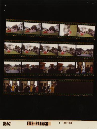 Keywords: Ford B0552 NLGRF photo contact sheet (1976-07-07)(Gerald Ford Library).jpg White House Photographic Office WHPO is housed at the Gerald R Ford Presidential Library a branch of the National Archives and Records Administration NARA <br/><br/> This file is a 200 dpi photo contact sheet having images from roll of film B0552 of the August 9 1974 - January 20 1977 Gerald R Ford White House Photographic Office Series A0001-A9999 and B0001-B2886 photographs <br/><br/> The date on the photo contact sheet is the date the roll of film was processed not necessarily the date the photographs were taken See table below for additional details 1976-07-07 Gerald R Ford Presidential Library Image http //www fordlibrarymuseum gov/library/whphotos/B0552_NLGRF jpg B0552_NLGRF jpg from http //www fordlibrarymuseum gov/library/whphotos/19760707whpo pdf White House Photographs July 7 1976 of the http //www fordlibrarymuseum gov/Library/whphotos/whpo asp White House Photographic Collection page White House Photographic Office WHPO - Fitz-Patrick PD-USGov Institution Institution Gerald R Ford Presidential Library Table wikitable sortable + Photo contact sheet B0552 U S President Ford Administration Gerald R Ford Library Frame s Tone Subject proper Subject generic Names Geographic Location Photographer Date - 3-11 Color State Arrival Ceremony in Honor of Queen Elizabeth II and Prince Philip GRF and QEII standing on lectern; GRF speaking into microphone; others standing on grass; various angles and distances; all not in every frame GRF Queen Elizabeth II; Betty Ford Prince Philip; Crowd South Lawn Fitz-Patrick 1976-07-07 - 12-13 Color State Arrival Ceremony in Honor of Queen Elizabeth II and Prince Philip GRF and QEII standing on lectern; GRF speaking into microphone; others standing on grass; long shots from Truman Balcony GRF Queen Elizabeth II; Betty Ford Prince Philip; Crowd South Lawn Fitz-Patrick 1976-07-07 - 14-16 Color State Arrival Ceremony in Honor of Queen Elizabeth II and Prince Philip standing obstructing view of cameraman Herald Trumpeters Truman Balcony Fitz-Patrick 1976-07-07 - 17-19 Color Reception Following State Arrival Ceremony in Honor of Queen Elizabeth II and Prince Philip standing talking GRF Queen Elizabeth II; Betty Ford Prince Philip Kissinger Blue Room Fitz-Patrick 1976-07-07 - 20 Color Reception Following State Arrival Ceremony in Honor of Queen Elizabeth II and Prince Philip greeting handshaking standing talking GRF Queen Elizabeth II; Betty Ford Prince Philip Unidentified Man Blue Room Fitz-Patrick 1976-07-07 Gerald R Ford Presidential Library and Museum-cooperation PD-USGov Contact sheets by the Ford White House July 1976 |