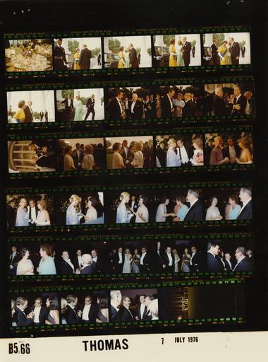 Keywords: Ford B0566 NLGRF photo contact sheet (1976-07-07)(Gerald Ford Library).jpg White House Photographic Office WHPO is housed at the Gerald R Ford Presidential Library a branch of the National Archives and Records Administration NARA <br/><br/> This file is a 200 dpi photo contact sheet having images from roll of film B0566 of the August 9 1974 - January 20 1977 Gerald R Ford White House Photographic Office Series A0001-A9999 and B0001-B2886 photographs <br/><br/> The date on the photo contact sheet is the date the roll of film was processed not necessarily the date the photographs were taken See table below for additional details 1976-07-07 Gerald R Ford Presidential Library Image http //www fordlibrarymuseum gov/library/whphotos/B0566_NLGRF jpg B0566_NLGRF jpg from http //www fordlibrarymuseum gov/library/whphotos/19760707whpo pdf White House Photographs July 7 1976 of the http //www fordlibrarymuseum gov/Library/whphotos/whpo asp White House Photographic Collection page White House Photographic Office WHPO - Thomas PD-USGov Institution Institution Gerald R Ford Presidential Library Table wikitable sortable + Photo contact sheet B0566 U S President Ford Administration Gerald R Ford Library Frame s Tone Subject proper Subject generic Names Geographic Location Photographer Date - Color Preparations for State Dinner in Honor of Queen Elizabeth II and Prince Philip setting tables; completed table settings in foreground White House Wait staff Tent on South Lawn Thomas 1976-07-07 - Color Arrival of Queen and Prince for State Dinner in Honor of Queen Elizabeth II and Prince Philip greeting handshaking standing talking near limousine; BF and Philip not in all frames; white tie formal wear GRF Queen Elizabeth II Betty Ford Prince Philip North Portico Thomas 1976-07-07 - Color Arrival of Queen and Prince for State Dinner in Honor of Queen Elizabeth II and Prince Philip walking toward doorway; close up; Secret Service in background; white tie formal wear GRF Queen Elizabeth II; Secret Service North Portico Thomas 1976-07-07 - Color Arrival of Queen and Prince for State Dinner in Honor of Queen Elizabeth II and Prince Philip standing talking near limousine; white tie formal wear Betty Ford Prince Philip Catto North Portico Thomas 1976-07-07 - Color Guests Prior to State Dinner in Honor of Queen Elizabeth II and Prince Philip greeting Standing talking; various angles and distances; all not in every frame; White House in background in some frames; white tie formal wear Dole Burger Sens Curis Mansfield Others South Lawn Thomas 1976-07-07 - Color Guests Prior to State Dinner in Honor of Queen Elizabeth II and Prince Philip standing talking; woman's back partially to camera; formal wear Lady Bird Johnson Unidentified Woman Military Aide South Lawn Thomas 1976-07-07 - Color Guests Prior to State Dinner in Honor of Queen Elizabeth II and Prince Philip standing talking laughing; white tie formal wear Susan Ford Donald Joyce Rumsfeld South Lawn Thomas 1976-07-07 - Color Guests Prior to State Dinner in Honor of Queen Elizabeth II and Prince Philip greeting handshaking standing talking; formal wear Susan Ford Lady Bird Johnson South Lawn Thomas 1976-07-07 - Color Guests Prior to State Dinner in Honor of Queen Elizabeth II and Prince Philip greeting handshaking standing talking; Jack Marsh not in last frame; white tie formal wear Lady Bird Johnson Jack Marsh Mrs Marsh South Lawn Thomas 1976-07-07 - Color Guests Prior to State Dinner in Honor of Queen Elizabeth II and Prince Philip - American Comedian and Actor greeting handshaking standing talking; white tie formal wear Bob Hope Cheney Two Unidentified Men South Lawn Thomas 1976-07-07 - Color Guests Prior to State Dinner in Honor of Queen Elizabeth II and Prince Philip - American Comedian and Actor; Daughter-n-law of Bob Hope and Domestic Council Associate Director for Transportation standing posing laughing; white tie formal wear; Judith Hope walking away in 2nd frame Bob Hope Judith Hope Joan Peter Secchia South Lawn Thomas 1976-07-07 - Color Guests Prior to State Dinner in Honor of Queen Elizabeth II and Prince Philip - American Comedian and Actor; Son of Bob Hope standing talking laughing; white tie formal wear Bob Hope Tony Hope Kissinger Others South Lawn Thomas 1976-07-07 - Color Guests Prior to State Dinner in Honor of Queen Elizabeth II and Prince Philip standing talking; white tie formal wear Cheney Joan Peter Secchia South Lawn Thomas 1976-07-07 - Color Guests Prior to State Dinner in Honor of Queen Elizabeth II and Prince Philip - American Comedian and Actor; Son of Bob Hope standing talking laughing; white tie formal wear Bob Hope Tony Hope Kissinger Others South Lawn Thomas 1976-07-07 - Color Prior to State Dinner in Honor of Queen Elizabeth II and Prince Philip standing; long shot from South Lawn; White House in background; white tie formal wear GRF Betty Ford Queen Elizabeth II Prince Philip guests; Musicians South Portico Thomas 1976-07-07 Gerald R Ford Presidential Library and Museum-cooperation PD-USGov Contact sheets by the Ford White House July 1976