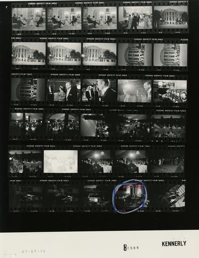 | Keywords: Ford B0589 NLGRF photo contact sheet (1976-07-07)(Gerald Ford Library).jpg White House Photographic Office WHPO is housed at the Gerald R Ford Presidential Library a branch of the National Archives and Records Administration NARA <br/><br/> This file is a 200 dpi photo contact sheet having images from roll of film B0589 of the August 9 1974 - January 20 1977 Gerald R Ford White House Photographic Office Series A0001-A9999 and B0001-B2886 photographs <br/><br/> The date on the photo contact sheet is the date the roll of film was processed not necessarily the date the photographs were taken See table below for additional details 1976-07-07 Gerald R Ford Presidential Library Image http //www fordlibrarymuseum gov/library/whphotos/B0589_NLGRF jpg B0589_NLGRF jpg from http //www fordlibrarymuseum gov/library/whphotos/19760707whpo pdf White House Photographs July 7 1976 of the http //www fordlibrarymuseum gov/Library/whphotos/whpo asp White House Photographic Collection page White House Photographic Office WHPO <br/> Creator David Hume Kennerly PD-USGov Institution Institution Gerald R Ford Presidential Library Table wikitable sortable + Photo contact sheet B0589 U S President Ford Administration Gerald R Ford Library Frame s Tone Subject proper Subject generic Names Geographic Location Photographer Date - 2-4 BW Reception Prior to State Dinner in Honor of Queen Elizabeth II and Prince Philip seated talking; white tie formal wear GRF Betty Ford Queen Elizabeth II Prince Philip Second Floor - Yellow Oval Room Kennerly 1976-07-07 - 5 BW Reception Prior to State Dinner in Honor of Queen Elizabeth II and Prince Philip walking toward doorway; white tie formal wear GRF Betty Ford Queen Elizabeth II Prince Philip Second Floor - Yellow Oval Room Kennerly 1976-07-07 - 6-9 BW Prior to State Dinner in Honor of Queen Elizabeth II and Prince Philip standing waiting for GRF Betty Ford Queen Elizabeth II Prince Philip to walk out of South Portico; long shot white tie formal wear; night shots guests Herald Trumpeters Others South Lawn Kennerly 1976-07-07 - 10-12 BW Prior to State Dinner in Honor of Queen Elizabeth II and Prince Philip GRF Betty Ford Queen Elizabeth II Prince Philip coming out of South Portico; others standing applauding; long shots; night shots; white tie formal wear GRF Betty Ford Queen Elizabeth II Prince Philip; guests Herald Trumpeters Others South Lawn Kennerly 1976-07-07 - 13A-14A BW Prior to State Dinner in Honor of Queen Elizabeth II and Prince Philip GRF and QEII entering tent; QEII obscured in 2nd frame; white tie formal wear GRF Queen Elizabeth II; Others Tent on South Lawn Kennerly 1976-07-07 - 15A BW Prior to State Dinner in Honor of Queen Elizabeth II and Prince Philip entering tent; BF backlit; white tie formal wear Betty Ford Prince Philip Tent on South Lawn Kennerly 1976-07-07 - 16A BW State Dinner in Honor of Queen Elizabeth II and Prince Philip standing by dessert table; white tie formal wear Wait staff; Chef Haller Unidentified Room Kennerly 1976-07-07 - 17A-22A BW State Dinner in Honor of Queen Elizabeth II and Prince Philip seated at tables; various angles and distances; all not in frames; white tie formal wear GRF Betty Ford Queen Elizabeth II Prince Philip; Vice President Mrs Rockefeller; Bob Hope; guests Tent on South Lawn Kennerly 1976-07-07 - 23A-25A BW State Dinner in Honor of Queen Elizabeth II and Prince Philip QEII standing reading remarks; Others seated; various angles and distances; all not in frames; white tie formal wear GRF Betty Ford Queen Elizabeth II Prince Philip; Vice President Mrs Rockefeller; Bob Hope; guests Tent on South Lawn Kennerly 1976-07-07 - 26A BW State Dinner in Honor of Queen Elizabeth II and Prince Philip walking toward White House from tent not seen ; musicians playing string instruments; white tie formal wear GRF Queen Elizabeth II; Musicians guests Driveway from South Lawn to White House Kennerly 1976-07-07 - 27A-30A BW Reception Prior to Entertainment Portion of State Dinner in Honor of Queen Elizabeth II and Prince Philip walking standing talking; too dark to make out features; white tie formal wear GRF Betty Ford Queen Elizabeth II Prince Philip Blue Room Kennerly 1976-07-07 - 31A BW State Dinner in Honor of Queen Elizabeth II and Prince Philip standing on stairway posing; looking up toward balcony; night shot; white tie formal wear Seidman Unidentified Man Spouses Stairs to Truman Balcony Kennerly 1976-07-07 Gerald R Ford Presidential Library and Museum-cooperation PD-USGov Contact sheets by the Ford White House July 1976 Photographs by David Hume Kennerly from 1976 |