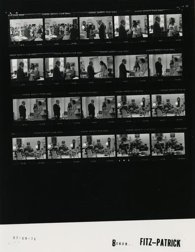 | Keywords: Ford B0609 NLGRF photo contact sheet (1976-07-09)(Gerald Ford Library).jpg White House Photographic Office WHPO is housed at the Gerald R Ford Presidential Library a branch of the National Archives and Records Administration NARA <br/><br/> This file is a 200 dpi photo contact sheet having images from roll of film B0609 of the August 9 1974 - January 20 1977 Gerald R Ford White House Photographic Office Series A0001-A9999 and B0001-B2886 photographs <br/><br/> The date on the photo contact sheet is the date the roll of film was processed not necessarily the date the photographs were taken See table below for additional details 1976-07-09 Gerald R Ford Presidential Library Image http //www fordlibrarymuseum gov/library/whphotos/B0609_NLGRF jpg B0609_NLGRF jpg from http //www fordlibrarymuseum gov/library/whphotos/19760709whpo pdf White House Photographs July 9 1976 of the http //www fordlibrarymuseum gov/Library/whphotos/whpo asp White House Photographic Collection page White House Photographic Office WHPO - Fitz-Patrick PD-USGov Institution Institution Gerald R Ford Presidential Library Table wikitable sortable + Photo contact sheet B0609 U S President Ford Administration Gerald R Ford Library Frame s Tone Subject proper Subject generic Names Geographic Location Photographer Date - 3-4 BW 34th Press Conference GRF seated on desk speaking gesturing; media taking notes; various angles and distances; all not in every frame GRF Media Oval Office Fitz-Patrick 1976-07-09 - 5 BW Following 34th Press Conference standing talking GRF Unidentified Woman Oval Office Fitz-Patrick 1976-07-09 - 6-9 BW Following 34th Press Conference standing talking GRF Unidentified Woman Oval Office Fitz-Patrick 1976-07-09 - 10-15 BW Informal Meeting greeting handshaking standing talking GRF Two Unidentified women Oval Office Fitz-Patrick 1976-07-09 - 16-20 BW Briefing on the Status of the Swine Flu Vacination; Secretayr and Assistant Secetary of Health Education and Welfare HEW ; Director and Deputy Assistant for Domestic Affairs seated near fireplace talking GRF David Mathews Ted Cooper Cannon Cavanaugh Nessen Oval Office Fitz-Patrick 1976-07-09 - 21-22 BW Briefing on the Status of the Swine Flu Vacination; Secretayr and Assistant Secetary of Health Education and Welfare HEW ; Director and Deputy Assistant for Domestic Affairs seated near fireplace talking GRF David Mathews Ted Cooper Oval Office Fitz-Patrick 1976-07-09 Gerald R Ford Presidential Library and Museum-cooperation PD-USGov Contact sheets by the Ford White House July 1976 |