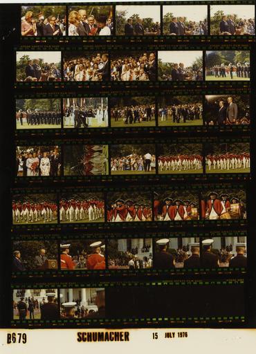 Keywords: Ford B0679 NLGRF photo contact sheet (1976-07-15)(Gerald Ford Library).jpg White House Photographic Office WHPO is housed at the Gerald R Ford Presidential Library a branch of the National Archives and Records Administration NARA <br/><br/> This file is a 200 dpi photo contact sheet having images from roll of film B0679 of the August 9 1974 - January 20 1977 Gerald R Ford White House Photographic Office Series A0001-A9999 and B0001-B2886 photographs <br/><br/> The date on the photo contact sheet is the date the roll of film was processed not necessarily the date the photographs were taken See table below for additional details 1976-07-15 Gerald R Ford Presidential Library Image http //www fordlibrarymuseum gov/library/whphotos/B0679_NLGRF jpg B0679_NLGRF jpg from http //www fordlibrarymuseum gov/library/whphotos/19760715whpo pdf White House Photographs July 15 1976 of the http //www fordlibrarymuseum gov/Library/whphotos/whpo asp White House Photographic Collection page White House Photographic Office WHPO - Schumacher PD-USGov Institution Institution Gerald R Ford Presidential Library Table wikitable sortable + Photo contact sheet B0679 U S President Ford Administration Gerald R Ford Library Frame s Tone Subject proper Subject generic Names Geographic Location Photographer Date - 1A Color State Arrival Ceremony for the Chancellor of the Federal Republic of Germany FRG Mrs Schmidt standing awaiting arrival of Chancellor and Mrs Schmidt Henry Nancy Kissinger South Driveway Schumacher 1976-07-15 - 2A Color State Arrival Ceremony for the Chancellor of the Federal Republic of Germany FRG Mrs Schmidt BF and GRF talking to woman; HAK in background GRF Betty Ford Kissinger Unidentified Woman South Driveway Schumacher 1976-07-15 - 3A-6A Color State Arrival Ceremony for the Chancellor of the Federal Republic of Germany FRG Mrs Schmidt standing on lectern for anthems; GRF's hand over heart in last frame; medium range GRF Helmut Schmidt South Lawn Schumacher 1976-07-15 - 7A-8A Color State Arrival Ceremony for the Chancellor of the Federal Republic of Germany FRG Mrs Schmidt standing behind rope; many children; all not in frames Crowd South Lawn Schumacher 1976-07-15 - 9A Color State Arrival Ceremony for the Chancellor of the Federal Republic of Germany FRG Mrs Schmidt standing on lectern; GRF's hand over heart; medium range GRF Helmut Schmidt South Lawn Schumacher 1976-07-15 - 10A-14A Color State Arrival Ceremony for the Chancellor of the Federal Republic of Germany FRG Mrs Schmidt GRF and Schmidt walking past Guard; various angles and distances; all not in frames GRF Helmut Schmidt; Captain of the Guard Honor Guard South Lawn Schumacher 1976-07-15 - 15A Color State Arrival Ceremony for the Chancellor of the Federal Republic of Germany FRG Mrs Schmidt standing on lectern; medium range GRF Helmut Schmidt South Lawn Schumacher 1976-07-15 - 16A Color State Arrival Ceremony for the Chancellor of the Federal Republic of Germany FRG Mrs Schmidt standing; Mrs Schmidt holding bouquet of flowers Betty Ford Loki Schmidt; Others South Lawn Schumacher 1976-07-15 - 17A Color State Arrival Ceremony for the Chancellor of the Federal Republic of Germany FRG Mrs Schmidt marching performing; medium range Old Guard Fife Drum Corps South Lawn Schumacher 1976-07-15 - 18A Color State Arrival Ceremony for the Chancellor of the Federal Republic of Germany FRG Mrs Schmidt standing behind rope; all not in frame Crowd South Lawn Schumacher 1976-07-15 - 19A-25A Color State Arrival Ceremony for the Chancellor of the Federal Republic of Germany FRG Mrs Schmidt marching performing; moving toward camera Old Guard Fife Drum Corps South Lawn Schumacher 1976-07-15 - 26A Color State Arrival Ceremony for the Chancellor of the Federal Republic of Germany FRG Mrs Schmidt standing on lectern; GRF speaking; medium range GRF Helmut Schmidt South Lawn Schumacher 1976-07-15 - 27A-32A Color State Arrival Ceremony for the Chancellor of the Federal Republic of Germany FRG Mrs Schmidt GRF and Helmut Schmidt standing on lectern; partially obscured by military in foreground in most frames; White House in background GRF Helmut Schmidt; Military Others South Lawn Schumacher 1976-07-15 Gerald R Ford Presidential Library and Museum-cooperation PD-USGov Contact sheets by the Ford White House July 1976 Old Guard Fife and Drum Corps |