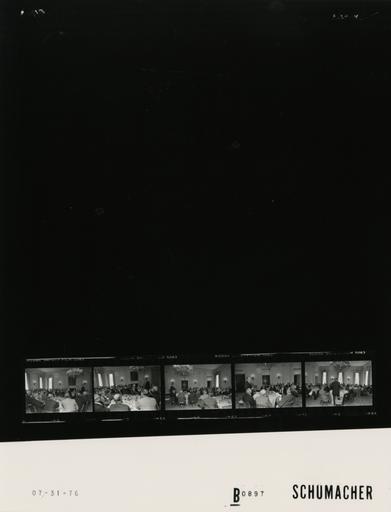 | Keywords: Ford B0897 NLGRF photo contact sheet (1976-07-31)(Gerald Ford Library).jpg White House Photographic Office WHPO is housed at the Gerald R Ford Presidential Library a branch of the National Archives and Records Administration NARA <br/><br/> This file is a 200 dpi photo contact sheet having images from roll of film B0897 of the August 9 1974 - January 20 1977 Gerald R Ford White House Photographic Office Series A0001-A9999 and B0001-B2886 photographs <br/><br/> The date on the photo contact sheet is the date the roll of film was processed not necessarily the date the photographs were taken See table below for additional details 1976-07-31 Gerald R Ford Presidential Library Image http //www fordlibrarymuseum gov/library/whphotos/B0897_NLGRF jpg B0897_NLGRF jpg from http //www fordlibrarymuseum gov/library/whphotos/19760731whpo pdf White House Photographs July 31 1976 of the http //www fordlibrarymuseum gov/Library/whphotos/whpo asp White House Photographic Collection page White House Photographic Office WHPO - Schumacher PD-USGov Institution Institution Gerald R Ford Presidential Library Table wikitable sortable + Photo contact sheet B0897 U S President Ford Administration Gerald R Ford Library Frame s Tone Subject proper Subject generic Names Geographic Location Photographer Date - 4-8 BW Reunion of Yale University Phi Delta Phi Fraternity GRF standing speaking; others seated at round tables; various angles and distances; all not in every frame GRF Aller Badger Belin Bellows Berry Brown Burns Caesar Calder Clapp Craig Crawford Deming Dempsey Dilworth Ebersol Ecklund Everdell French Gallagher Galland Gary Hallett Hessberg Hornblower Hutson Keefe Kluttz Lamb Others State Dining Room Schumacher 1976-07-31 Gerald R Ford Presidential Library and Museum-cooperation PD-USGov Contact sheets by the Ford White House July 1976 |