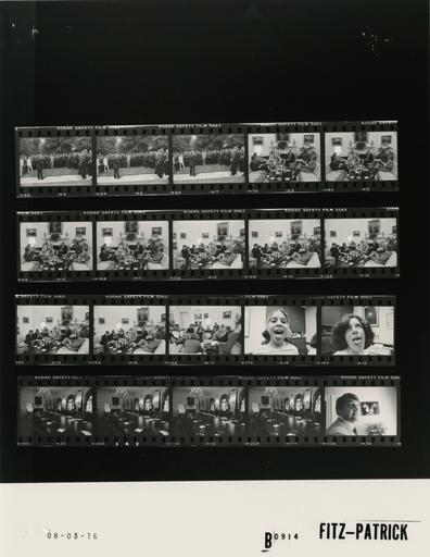 Keywords: Ford B0914 NLGRF photo contact sheet (1976-07-22)(Gerald Ford Library).jpg White House Photographic Office WHPO is housed at the Gerald R Ford Presidential Library a branch of the National Archives and Records Administration NARA <br/><br/> This file is a 200 dpi photo contact sheet having images from roll of film B0914 of the August 9 1974 - January 20 1977 Gerald R Ford White House Photographic Office Series A0001-A9999 and B0001-B2886 photographs <br/><br/> The date on the photo contact sheet is the date the roll of film was processed not necessarily the date the photographs were taken See table below for additional details 1976-07-22 Gerald R Ford Presidential Library Image http //www fordlibrarymuseum gov/library/whphotos/B0914_NLGRF jpg B0914_NLGRF jpg from http //www fordlibrarymuseum gov/library/whphotos/19760722whpo pdf White House Photographs July 22 1976 of the http //www fordlibrarymuseum gov/Library/whphotos/whpo asp White House Photographic Collection page White House Photographic Office WHPO - Fitz-Patrick PD-USGov Institution Institution Gerald R Ford Presidential Library Table wikitable sortable + Photo contact sheet B0914 U S President Ford Administration Gerald R Ford Library Frame s Tone Subject proper Subject generic Names Geographic Location Photographer Date - 5-7 BW Meeting with Participants in the 1976 State President's Conference of the Future Farmers of America FFA youths standing in arch; GRF speaking back to camera GRF Future Farmers Lawn Outside Oval Office Fitz-Patrick 1976-07-22 - 8-17 BW Interview with Reader's Digest Editor-in-Chief Managing Editor Washington Editor and Assistant Managing Editor seated near fireplace; various angles and distances; all not in every frame GRF Edward Thompson Kenneth Gilmore William Shulz Jeremmy Dole John Carlson Oval Office Fitz-Patrick 1976-07-22 - 18-19 BW sticking out tongues Unidentified Girl Kathy Tindle White House Photo Office Fitz-Patrick 1976-07-22 - 20-23 BW Meeting to Discuss Federal Immunization Program Against Swine Influenza seated around table; all not in frames GRF Mathews Theodore Cooper William Taft Stanford Winston William Rhatican Cavanaugh O'Neill Marsh Cabinet Room Fitz-Patrick 1976-07-22 - 24 BW close up Unidentified Man White House Photo Office Fitz-Patrick 1976-07-22 Gerald R Ford Presidential Library and Museum-cooperation PD-USGov Contact sheets by the Ford White House July 1976 National FFA Organization