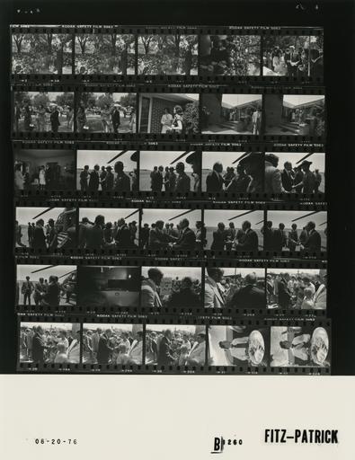 | Keywords: Ford B1260 NLGRF photo contact sheet (1976-08-20)(Gerald Ford Library).jpg White House Photographic Office WHPO is housed at the Gerald R Ford Presidential Library a branch of the National Archives and Records Administration NARA <br/><br/> This file is a 200 dpi photo contact sheet having images from roll of film B1260 of the August 9 1974 - January 20 1977 Gerald R Ford White House Photographic Office Series A0001-A9999 and B0001-B2886 photographs <br/><br/> The date on the photo contact sheet is the date the roll of film was processed not necessarily the date the photographs were taken See table below for additional details 1976-08-20 Gerald R Ford Presidential Library Image http //www fordlibrarymuseum gov/library/whphotos/B1260_NLGRF jpg B1260_NLGRF jpg from http //www fordlibrarymuseum gov/library/whphotos/19760820whpo pdf White House Photographs August 20 1976 of the http //www fordlibrarymuseum gov/Library/whphotos/whpo asp White House Photographic Collection page White House Photographic Office WHPO - Fitz-Patrick PD-USGov Institution Institution Gerald R Ford Presidential Library Table wikitable sortable + Photo contact sheet B1260 U S President Ford Administration Gerald R Ford Library Frame s Tone Subject proper Subject generic Names Geographic Location Photographer Date - 3-5 BW Trip to Kansas - Russell Kansas GRF at microphone speaking; crowd seted listening on left of photos; taken from left of stage GRF Crowd Russell KS Russell County Courthouse -Outside Fitz-Patrick 1976-08-20 - 6 BW Trip to Kansas - Russell Kansas greeting handshaking; GRF surrounded in crowd GRF Crowd Russell KS Russell County Courthouse -Outside Fitz-Patrick 1976-08-20 - 7 BW Trip to Kansas; Wife of Sen Dole - Russell Kansas talking; eating GRF Elizabeth Dole Others Russell KS Russell County Courthouse -Outside Fitz-Patrick 1976-08-20 - 8-9 BW Trip to Kansas; Rally for Vice President-Designate in Home Town; Mother of Sen Dole - Russell Kansas talking walking; Secret Service in some frames GRF Sen Mrs Elizabeth Dole Russell KS Doran R Dole Residence - Outside Fitz-Patrick 1976-08-20 - 10 BW Trip to Kansas; Rally for Vice President-Designate in Home Town; Wife and Mother of Sen Dole - Russell Kansas standing talking on porch Elizabeth Dole; Doran R Dole Russell KS Doran R Dole Residence - Outside Fitz-Patrick 1976-08-20 - 11-12 BW Trip to Kansas; Rally for Vice President-Designate in Home Town; Wife and Mother of Sen Dole - Russell Kansas standing talking on porch; Secret Service at base of steps; long shots GRF Sen Mrs Elizabeth Dole; Doran R Dole Secret Service Russell KS Doran R Dole Residence - Outside Fitz-Patrick 1976-08-20 - 13 BW Trip to Kansas; Rally for Vice President-Designate in Home Town; Wife and Mother of Sen Dole - Russell Kansas standing talking GRF Elizabeth Dole; Doran R Dole Unidentified Woman Russell KS Doran R Dole Residence - Living Room Fitz-Patrick 1976-08-20 - 14-18 BW Trip to Russell Kansas; Prior to GRF's Departure for Grand Junction Colorado - Salina Kansas greeting handshaking near Marine One helicopter ; only rotors visible in 1st 4 frames GRF Dole Kansas Highway Patrolmen Salina KS Salina Airport Fitz-Patrick 1976-08-20 - 19-23 BW Trip to Russell Kansas; Prior to GRF's Departure for Grand Junction Colorado - Salina Kansas greeting handshaking near Marine One helicopter ; only rotors visible GRF Unidentified Men Salina KS Salina Airport Fitz-Patrick 1976-08-20 - 24 BW Flight to Grand Junction Colorado Air Force One Fitz-Patrick 1976-08-20 - 25-30 BW Vacation Trip to Vail Colorado - Arrival in Grand Junction Colorado greeting handshaking; various angles and distances; all not in every frame; sign I've Been Voting in the Presidential Election since 1913 in 1st frame GRF Crowd; Secret Service Grand Junction CO Walker Field Fitz-Patrick 1976-08-20 - 31-32 BW Vacation Trip to Vail Colorado seated; tray of food in foreground Cavaney Vail CO Presidential Vacation Residence - Richard Bass Residence Fitz-Patrick 1976-08-20 Gerald R Ford Presidential Library and Museum-cooperation PD-USGov Contact sheets by the Ford White House August 1976 |