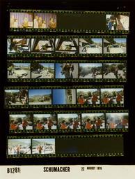 | Keywords: Ford B1281 NLGRF photo contact sheet (1976-08-19)(Gerald Ford Library).jpg White House Photographic Office WHPO is housed at the Gerald R Ford Presidential Library a branch of the National Archives and Records Administration NARA <br/><br/> This file is a 200 dpi photo contact sheet having images from roll of film B1281 of the August 9 1974 - January 20 1977 Gerald R Ford White House Photographic Office Series A0001-A9999 and B0001-B2886 photographs <br/><br/> The date on the photo contact sheet is the date the roll of film was processed not necessarily the date the photographs were taken See table below for additional details 1976-08-19 Gerald R Ford Presidential Library Image http //www fordlibrarymuseum gov/library/whphotos/B1281_NLGRF jpg B1281_NLGRF jpg from http //www fordlibrarymuseum gov/library/whphotos/19760819whpo pdf White House Photographs August 19 1976 of the http //www fordlibrarymuseum gov/Library/whphotos/whpo asp White House Photographic Collection page White House Photographic Office WHPO - Schumacher PD-USGov Institution Institution Gerald R Ford Presidential Library Table wikitable sortable + Photo contact sheet B1281 U S President Ford Administration Gerald R Ford Library Frame s Tone Subject proper Subject generic Names Geographic Location Photographer Date - 2-3 Color Trip to Kansas City Missouri - Convention - Announcement of Dole as Vice Presidential Candidate Dole speaking at microphone; others in background; Laxalt in 2nd frame only; close ups GRF Dole Elizabeth Dole Sen Laxalt Kansas City MO Crown Center Hotel - Century Room Schumacher 1976-08-19 - 4-5 Color Schumacher 1976-08-19 - 6-7 Color Vacation Trip to Vail Colorado - Governor of Colorado standing talking at base of steps; casual dress GRF Governor Lamm Vail CO Presidential Vacation Residence - Richard Bass Residence - Outside Schumacher 1976-08-21 - 8-9 Color Vacation Trip to Vail Colorado standing base of steps; casual dress GRF Vail CO Presidential Vacation Residence - Richard Bass Residence - Outside Schumacher 1976-08-21 - 10-12 Color Vacation Trip to Vail Colorado GRF leaning over talking through window to men in car; car has siren and lights mounted on roof rack GRF Security Guards Secret Service Vail CO Streets Schumacher 1976-08-21 - 13-19 Color Vacation Trip to Vail Colorado - Pet Golden Retrievers -Photo Opportunity for Media standing talking walking dogs; various angles and distances; all not in every frame; media in some frames GRF Susan Ford Liberty Misty; Media Vail CO Streets Schumacher 1976-08-21 - 20-26 Color Vacation Trip to Vail Colorado - Pet Golden Retrievers -Impromptu Press Conference Following Photo Opportunity for Media standing talking; various angles and distances; all not in every frame GRF Dick Growald Marilyn Berger Other Media Vail CO Presidential Vacation Residence - Richard Bass Residence - Outside Schumacher 1976-08-21 - 27-28 Color Vacation Trip to Vail Colorado - Golf Outing - Golf Professional for Vail Golf Course greeting handshaking talking near limousine GRF Bob Wolfe Vail CO Vail Golf Course Schumacher 1976-08-21 Gerald R Ford Presidential Library and Museum-cooperation PD-USGov Contact sheets by the Ford White House August 1976 |