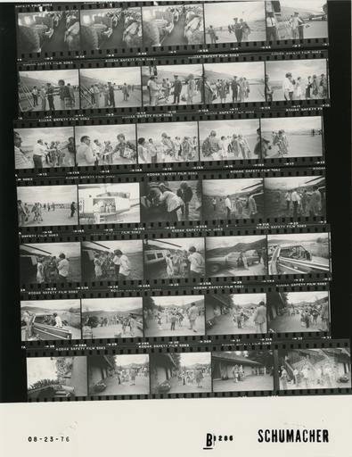 | Keywords: Ford B1286 NLGRF photo contact sheet (1976-08-20)(Gerald Ford Library).jpg White House Photographic Office WHPO is housed at the Gerald R Ford Presidential Library a branch of the National Archives and Records Administration NARA <br/><br/> This file is a 200 dpi photo contact sheet having images from roll of film B1286 of the August 9 1974 - January 20 1977 Gerald R Ford White House Photographic Office Series A0001-A9999 and B0001-B2886 photographs <br/><br/> The date on the photo contact sheet is the date the roll of film was processed not necessarily the date the photographs were taken See table below for additional details 1976-08-20 Gerald R Ford Presidential Library Image http //www fordlibrarymuseum gov/library/whphotos/B1286_NLGRF jpg B1286_NLGRF jpg from http //www fordlibrarymuseum gov/library/whphotos/19760820whpo pdf White House Photographs August 20 1976 of the http //www fordlibrarymuseum gov/Library/whphotos/whpo asp White House Photographic Collection page White House Photographic Office WHPO - Schumacher PD-USGov Institution Institution Gerald R Ford Presidential Library Table wikitable sortable + Photo contact sheet B1286 U S President Ford Administration Gerald R Ford Library Frame s Tone Subject proper Subject generic Names Geographic Location Photographer Date - 3-5 BW Vacation Trip to Vail Colorado - Flight from Russell Kansas to Grand Junction Colorado seated; some sleeping; all not in every frame; plane Media White House staff First Lady's Plane Schumacher 1976-08-20 - 6 BW Vacation Trip to Vail Colorado - Arrival of Ford Family standing schmoozing for camera; Barrett in uniform Jack Ford Barrett Grand Junction CO Walker Field Schumacher 1976-08-20 - 7-8 BW Vacation Trip to Vail Colorado - Arrival of Ford Family embracing talking; Barrett in uniform; Jack Ford in 2nd frame; plane DC-9 in background Susan Ford Barrett Grand Junction CO Walker Field Schumacher 1976-08-20 - 9-18 BW Vacation Trip to Vail Colorado - Arrival of Ford Family greeting handshaking standing talking; Barrett in uniform; various angles and distances; all not in every frame; C-9 aircraft DC-9 in some frames Betty Ford Jack Ford Susan Ford Barrett Welcoming Committee Others Grand Junction CO Walker Field Schumacher 1976-08-20 - 19 BW Vacation Trip to Vail Colorado - Prior to Flight to Vail Colorado seated in helicopter schmoozing for camera Unidentified Woman Grand Junction CO Walker Field Schumacher 1976-08-20 - 20 BW Vacation Trip to Vail Colorado - Prior to Flight to Vail Colorado 4 agents ducking under helicopter rotors Secret Service Grand Junction CO Walker Field Schumacher 1976-08-20 - 21-25 BW Vacation Trip to Vail Colorado - Arrival in Vail Colorado greeting handshaking embracing kissing; various angles and distances; all not in every frame; helicopter in some frames Betty Ford Susan Ford Others Vail CO Nottingham Ranch Helipad Schumacher 1976-08-20 - 26 BW Vacation Trip to Vail Colorado - Arrival in Vail Colorado hands clasped behind head; leaning on liousine Buick Electra Jack Ford Vail CO Nottingham Ranch Helipad Schumacher 1976-08-20 - 27-28 BW Vacation Trip to Vail Colorado - Arrival in Vail Colorado seated in back of Mercury Station Wagon; gate open; Weidenfeld in 2nd frame First Lady's staffperson Vail CO Nottingham Ranch Helipad Schumacher 1976-08-20 - 29-37 BW Vacation Trip to Vail Colorado - Arrival in Vail Colorado - Pet Golden Retrievers BF waving; greeting children; Susan holding dogs; various angles and distances; all not in every frame; last frame double-exposed Betty Ford Jack Ford Susan Ford Media Crowd Liberty Misty Vail CO Presidential Vacation Residence - Richard Bass Residence - Outside Schumacher 1976-08-20 Gerald R Ford Presidential Library and Museum-cooperation PD-USGov Contact sheets by the Ford White House August 1976 |