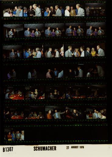 | Keywords: Ford B1307 NLGRF photo contact sheet (1976-08-25)(Gerald Ford Library).jpg White House Photographic Office WHPO is housed at the Gerald R Ford Presidential Library a branch of the National Archives and Records Administration NARA <br/><br/> This file is a 200 dpi photo contact sheet having images from roll of film B1307 of the August 9 1974 - January 20 1977 Gerald R Ford White House Photographic Office Series A0001-A9999 and B0001-B2886 photographs <br/><br/> The date on the photo contact sheet is the date the roll of film was processed not necessarily the date the photographs were taken See table below for additional details 1976-08-25 Gerald R Ford Presidential Library Image http //www fordlibrarymuseum gov/library/whphotos/B1307_NLGRF jpg B1307_NLGRF jpg from http //www fordlibrarymuseum gov/library/whphotos/19760825whpo pdf White House Photographs August 25 1976 of the http //www fordlibrarymuseum gov/Library/whphotos/whpo asp White House Photographic Collection page White House Photographic Office WHPO - Schumacher PD-USGov Institution Institution Gerald R Ford Presidential Library Table wikitable sortable + Photo contact sheet B1307 U S President Ford Administration Gerald R Ford Library Frame s Tone Subject proper Subject generic Names Geographic Location Photographer Date - 28A-31A Color Vacation Trip to Vail Colorado - Prior to Dinner with Doles and Secchias greeting handshaking standing talking; various angles and distances; all not in every frame GRF Others Vail CO Vail Village Inn Playhouse Schumacher 1976-08-25 - 1A-4A Color Vacation Trip to Vail Colorado - Awards Reception for the Pro-Am Charity Golf Tournament standing talking; various angles and distances; all not in every frame GRF Others Vail CO Mark Resort and Tennis Club Schumacher 1976-08-27 - 5A Color Vacation Trip to Vail Colorado - Awards Reception for the Pro-Am Charity Golf Tournament GRF standing at microphone; addressing group GRF Others Vail CO Mark Resort and Tennis Club Schumacher 1976-08-27 - 6A Color Vacation Trip to Vail Colorado - Awards Reception for the Pro-Am Charity Golf Tournament standing at microphone GRF Unidentified Man Vail CO Mark Resort and Tennis Club Schumacher 1976-08-27 - 7A-11A Color Vacation Trip to Vail Colorado - Awards Reception for the Pro-Am Charity Golf Tournament standing; GRF at microphone addressing group; Dole at microphone in last frame GRF Bob Dole Elizabeth Dole Vail CO Mark Resort and Tennis Club Schumacher 1976-08-27 - 12A-15A Color Vacation Trip to Vail Colorado - Awards Reception for the Pro-Am Charity Golf Tournament greeting handshaking standing talking; various angles and distances; all not in every frame GRF Others Vail CO Mark Resort and Tennis Club Schumacher 1976-08-27 - 16A-20A Color Vacation Trip to Vail Colorado greeting handshaking standing talking; mmeeting children in last frame; various angles and distances; all not in every frame GRF Others Vail CO Street Schumacher 1976-08-27 - 21A Color Vacation Trip to Vail Colorado - Prior to Dinner with Doles and Secchias seated at table talking GRF Bob Dole Elizabeth Dole Susan Ford Vail CO Vail Village Inn Playhouse Schumacher 1976-08-27 - 22A-25A Color Vacation Trip to Vail Colorado - Prior to Dinner with Doles and Secchias GRF seated laughing; woman seated in GRF's lap; Bob Dole Elizabeth Dole Susan Ford in last 2 frames GRF Femal Performer Vail CO Vail Village Inn Playhouse Schumacher 1976-08-27 - 26A-27A Color Vacation Trip to Vail Colorado - Prior to Dinner with Doles and Secchias seated around table; all not in both frames GRF Bob Dole Elizabeth Dole Susan Ford Stephanie Secchia Vail CO Vail Village Inn Playhouse Schumacher 1976-08-27 Gerald R Ford Presidential Library and Museum-cooperation PD-USGov Contact sheets by the Ford White House August 1976 |