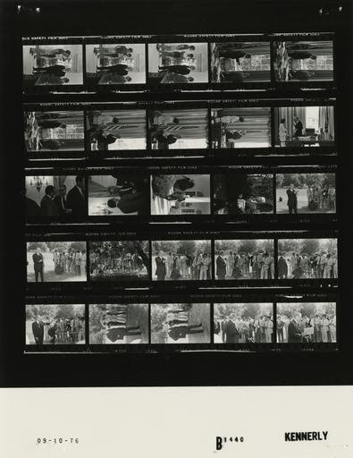 Keywords: Ford B1440 NLGRF photo contact sheet (1976-09-08)(Gerald Ford Library).jpg White House Photographic Office WHPO is housed at the Gerald R Ford Presidential Library a branch of the National Archives and Records Administration NARA <br/><br/> This file is a 200 dpi photo contact sheet having images from roll of film B1440 of the August 9 1974 - January 20 1977 Gerald R Ford White House Photographic Office Series A0001-A9999 and B0001-B2886 photographs <br/><br/> The date on the photo contact sheet is the date the roll of film was processed not necessarily the date the photographs were taken See table below for additional details 1976-09-08 Gerald R Ford Presidential Library Image http //www fordlibrarymuseum gov/library/whphotos/B1440_NLGRF jpg B1440_NLGRF jpg from http //www fordlibrarymuseum gov/library/whphotos/19760908whpo pdf White House Photographs September 8 1976 of the http //www fordlibrarymuseum gov/Library/whphotos/whpo asp White House Photographic Collection page White House Photographic Office WHPO <br/> Creator David Hume Kennerly PD-USGov Institution Institution Gerald R Ford Presidential Library Table wikitable sortable + Photo contact sheet B1440 U S President Ford Administration Gerald R Ford Library Frame s Tone Subject proper Subject generic Names Geographic Location Photographer Date - 1A-3A BW standing talking near desk; failrly close up GRF Mike Gayle Ford Kissinger Oval Office Kennerly 1976-09-08 - 4A-6A BW standing talking near window behind desk; desk in foreground GRF Kissinger Oval Office Kennerly 1976-09-08 - 7A-10A BW standing talking near flag behind desk; desk in foreground; various angled and distances GRF Carla Hills Oval Office Kennerly 1976-09-08 - 11A-12A BW Prior to Cabinet Meeting standing talking; fairly close up Rockefeller Kissinger Cabinet Room Kennerly 1976-09-08 - 13A-14A BW Prior to 36th Press Conference walking from Colonnade; moving toward camera; papers under left arm GRF Rose Garden Kennerly 1976-09-08 - 15A-25A BW 36th Press Conference GRF standing speaking; media standing in arc around GRF; various angles and distances; all not in every frame GRF Media Rose Garden Kennerly 1976-09-08 Gerald R Ford Presidential Library and Museum-cooperation PD-USGov Contact sheets by the Ford White House September 1976 Photographs by David Hume Kennerly from 1976
