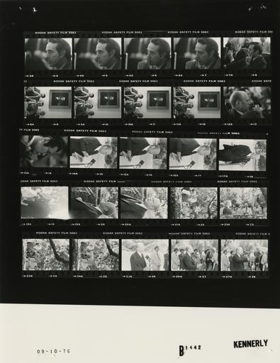 Keywords: Ford B1442 NLGRF photo contact sheet (1976-09-08)(Gerald Ford Library).jpg White House Photographic Office WHPO is housed at the Gerald R Ford Presidential Library a branch of the National Archives and Records Administration NARA <br/><br/> This file is a 200 dpi photo contact sheet having images from roll of film B1442 of the August 9 1974 - January 20 1977 Gerald R Ford White House Photographic Office Series A0001-A9999 and B0001-B2886 photographs <br/><br/> The date on the photo contact sheet is the date the roll of film was processed not necessarily the date the photographs were taken See table below for additional details 1976-09-08 Gerald R Ford Presidential Library Image http //www fordlibrarymuseum gov/library/whphotos/B1442_NLGRF jpg B1442_NLGRF jpg from http //www fordlibrarymuseum gov/library/whphotos/19760908whpo pdf White House Photographs September 8 1976 of the http //www fordlibrarymuseum gov/Library/whphotos/whpo asp White House Photographic Collection page White House Photographic Office WHPO <br/> Creator David Hume Kennerly PD-USGov Institution Institution Gerald R Ford Presidential Library Table wikitable sortable + Photo contact sheet B1442 U S President Ford Administration Gerald R Ford Library Frame s Tone Subject proper Subject generic Names Geographic Location Photographer Date - 4-7 BW Cabinet Meeting -Vice Presidential Candidate seated at table; head and shoulder close up profiles; hand near chin in last 2 frames Dole Cabinet Room Kennerly 1976-09-08 - 8 BW Cabinet Meeting seated at table; GRF smoking pipe; Rumsfeld with left hand on cheek GRF Rumsfeld Cabinet Room Kennerly 1976-09-08 - 9-12 BW Cabinet Meeting -Vice Presidential Candidate Doles seated at table; Others in background; Lincoln Portrait on wall Dole; Nessen Unidentified Man Cabinet Room Kennerly 1976-09-08 - 13 BW Cabinet Meeting close up; right side profile; holding pipe; top of head in foreground GRF Cabinet Room Kennerly 1976-09-08 - 14 BW Cabinet Meeting close up; right side profile; left hand on chin Rumsfeld Cabinet Room Kennerly 1976-09-08 - 15-21 BW 36th Press Conference speaking at microphone; close ups; various angles; 1 frame overexposed GRF Rose Garden Kennerly 1976-09-08 - 22-25 BW 36th Press Conference GRF speaking at microphone; media standing; hedge in foreground; all not in frames GRF Media Rose Garden Kennerly 1976-09-08 - 26-28 BW 36th Press Conference GRF speaking at microphone; media standing; fairly close up; all not in frames GRF Media Rose Garden Kennerly 1976-09-08 Gerald R Ford Presidential Library and Museum-cooperation PD-USGov Contact sheets by the Ford White House September 1976 Photographs by David Hume Kennerly from 1976