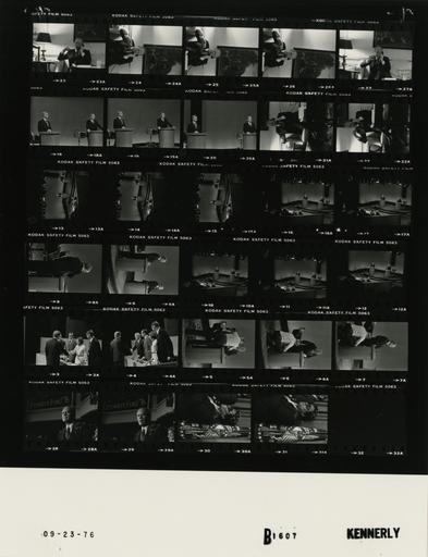 | Keywords: Ford B1607 NLGRF photo contact sheet (1976-09-23)(Gerald Ford Library).jpg White House Photographic Office WHPO is housed at the Gerald R Ford Presidential Library a branch of the National Archives and Records Administration NARA <br/><br/> This file is a 200 dpi photo contact sheet having images from roll of film B1607 of the August 9 1974 - January 20 1977 Gerald R Ford White House Photographic Office Series A0001-A9999 and B0001-B2886 photographs <br/><br/> The date on the photo contact sheet is the date the roll of film was processed not necessarily the date the photographs were taken See table below for additional details 1976-09-23 Gerald R Ford Presidential Library Image http //www fordlibrarymuseum gov/library/whphotos/B1607_NLGRF jpg B1607_NLGRF jpg from http //www fordlibrarymuseum gov/library/whphotos/19760923whpo pdf White House Photographs September 23 1976 of the http //www fordlibrarymuseum gov/Library/whphotos/whpo asp White House Photographic Collection page White House Photographic Office WHPO <br/> Creator David Hume Kennerly PD-USGov Institution Institution Gerald R Ford Presidential Library Table wikitable sortable + Photo contact sheet B1607 U S President Ford Administration Gerald R Ford Library Frame s Tone Subject proper Subject generic Names Geographic Location Photographer Date - 3-4 BW Trip to Philadelphia Pennsylvania - Prior to First Presidential Debate Between Gerald R Ford and Jimmy Carter greeting hnadshaking at panelists' desk; Carter's back to camera Jimmy Carter Edwin Newman Elizabeth Drew James Gannon Frank Reynolds Philadelphia PA Walnut Street Theater Kennerly 1976-09-23 - 5-7 BW Trip to Philadelphia Pennsylvania - Prior to First Presidential Debate Between Gerald R Ford and Jimmy Carter Carter standing at lectern; technicians wiring him Jimmy Carter Technicians Philadelphia PA Walnut Street Theater Kennerly 1976-09-23 - 8 BW Trip to Philadelphia Pennsylvania - Prior to First Presidential Debate Between Gerald R Ford and Jimmy Carter greeting handshaking; Carter's back to camera GRF Jimmy Carter Philadelphia PA Walnut Street Theater Kennerly 1976-09-23 - 9 BW Trip to Philadelphia Pennsylvania - First Presidential Debate Between Gerald R Ford and Jimmy Carter standing behind individual lecterns; taken from right of Carter GRF Jimmy Carter Philadelphia PA Walnut Street Theater Kennerly 1976-09-23 - 10-17 BW Trip to Philadelphia Pennsylvania - First Presidential Debate Between Gerald R Ford and Jimmy Carter GRF and Carter standing behind individual lecterns; panelists in foregound; long shots taken from higher vantage point GRF Jimmy Carter Edwin Newman Elizabeth Drew James Gannon Frank Reynolds Philadelphia PA Walnut Street Theater Kennerly 1976-09-23 - 18-20 BW Trip to Philadelphia Pennsylvania - First Presidential Debate Between Gerald R Ford and Jimmy Carter standing behind individual lecterns; medium range GRF Jimmy Carter Philadelphia PA Walnut Street Theater Kennerly 1976-09-23 - 22-27 BW Trip to Philadelphia Pennsylvania - Following First Presidential Debate Between Gerald R Ford and Jimmy Carter seated on sofa talking on telephone to Betty Ford holding pipe; close to medium range GRF Philadelphia PA Barclay House - President's Suite Kennerly 1976-09-23 - 28-29 BW Trip to Philadelphia Pennsylvania - Post Debate Reception Sponsored by the President Ford Committees PFC of Pennsylvania Delaware and New Jersey Shortly after Midnight GRF standing at lectern speaking confetti on shoulder; close ups taken from lower level GRF Philadelphia PA Bellevue Stratford Hotel - Grand Ballroom Kennerly 1976-09-24 - 30-31 BW Trip to Philadelphia Pennsylvania - Post Debate Reception Sponsored by the President Ford Committees PFC of Pennsylvania Delaware and New Jersey Shortly after Midnight seated near Presidential Flag; confetti on hair and shoulders Unidentified Woman Philadelphia PA Bellevue Stratford Hotel - Grand Ballroom Kennerly 1976-09-24 Gerald R Ford Presidential Library and Museum-cooperation PD-USGov Contact sheets by the Ford White House September 1976 Photographs by David Hume Kennerly from 1976 |