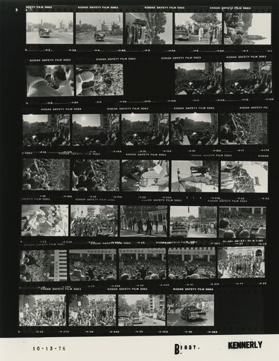 Keywords: Ford B1837 NLGRF photo contact sheet (1976-10-13)(Gerald Ford Library).jpg White House Photographic Office WHPO is housed at the Gerald R Ford Presidential Library a branch of the National Archives and Records Administration NARA <br/><br/> This file is a 200 dpi photo contact sheet having images from roll of film B1837 of the August 9 1974 - January 20 1977 Gerald R Ford White House Photographic Office Series A0001-A9999 and B0001-B2886 photographs <br/><br/> The date on the photo contact sheet is the date the roll of film was processed not necessarily the date the photographs were taken See table below for additional details 1976-10-13 Gerald R Ford Presidential Library Image http //www fordlibrarymuseum gov/library/whphotos/B1837_NLGRF jpg B1837_NLGRF jpg from http //www fordlibrarymuseum gov/library/whphotos/19761013whpo pdf White House Photographs October 13 1976 of the http //www fordlibrarymuseum gov/Library/whphotos/whpo asp White House Photographic Collection page White House Photographic Office WHPO <br/> Creator David Hume Kennerly PD-USGov Institution Institution Gerald R Ford Presidential Library Table wikitable sortable + Photo contact sheet B1837 U S President Ford Administration Gerald R Ford Library Frame s Tone Subject proper Subject generic Names Geographic Location Photographer Date - 3-4 BW Campaign Trip to New York; Motorcade to Campaign Rally in Yonkers - Yonkers New York riding in limousine; rolling away from camera; long shots; Yonkers City Hall in background Secret Service Yonkers NY Street Kennerly 1976-10-13 - 5-6 BW Campaign Trip to New York; Motorcade to Campaign Rally in Yonkers - Yonkers New York GRF waving riding in lead vehicle; Secret Riding in 2nd limousine; rolling away from camera; close up; Yonkers City Hall in background GRF Secret Service Yonkers NY Street Kennerly 1976-10-13 - 7-9 BW Campaign Trip to New York; Arrival for Campaign Rally in Yonkers - Yonkers New York greeting handshaking talking; GRF not in all frames; all not in every frame GRF Crowd Others Yonkers NY Yonkers City Hall - Outside Kennerly 1976-10-13 - 10 BW Kennerly 1976-10-13 - 11-19 BW Campaign Trip to New York; Campaign Rally in Yonkers - Yonkers New York GRF at lectern speaking; crowd on left of frame; taken from left of GRF GRF Sens Javits Buckley; Rosenbaum Mayor Martinelli Malcolm Wilson J O'Rourke Platform Guests; Crowd Yonkers NY Yonkers City Hall - Outside Kennerly 1976-10-13 - 20 BW Campaign Trip to New York; Following Signing Ceremony for H R 13367 The State and Local Fiscal Assistance Amendments of 1976 General Revenue Sharing - Yonkers New York standing; GRF hold signed copy of H R 13367 The State and Local Fiscal Assistance Amendments of 1976 General Revenue Sharing; Wydler appaluding GRF Rep Wydler Yonkers NY Yonkers City Hall - Outside Kennerly 1976-10-13 - 21 BW Campaign Trip to New York; Following Signing Ceremony for H R 13367 The State and Local Fiscal Assistance Amendments of 1976 General Revenue Sharing - Yonkers New York holding telephone receiver to ear; writing on paper; telephone on sidewalk Unidentified Man Yonkers NY Yonkers City Hall - Outside Kennerly 1976-10-13 - 22 BW Campaign Trip to New York; Following Signing Ceremony for H R 13367 The State and Local Fiscal Assistance Amendments of 1976 General Revenue Sharing - Yonkers New York standing by Moczydlowski street sign Secret Service Media Yonkers NY Yonkers City Hall - Outside Kennerly 1976-10-13 - 23 BW Campaign Trip to New York; Following Signing Ceremony for H R 13367 The State and Local Fiscal Assistance Amendments of 1976 General Revenue Sharing - Yonkers New York close up; holding bouquet of flowers O'Donnell Yonkers NY Yonkers City Hall - Outside Kennerly 1976-10-13 - 24-26 BW Campaign Trip to New York - Motorcade to White Plains NY police moving crowd behind rope in 2nd frame; secret service riding in limousine in other Police Officers Secret Service Crowd NY Street Kennerly 1976-10-13 - 27-31 BW Campaign Trip to New York; Campaign Rally in White Plains -White Plains New York GRF at lectern speaking back to camera; crowd in background some holding signs GRF Platform Guests Crowd White Plains NY White Plains City Hall - Outside Kennerly 1976-10-13 - 35-36 BW Campaign Trip to New York - Motorcade to Campaign Rally in Paramus NJ riding in limousine; rolling away from camera; long shots; looking up at building rooftop in 1st frame Secret Service NY Street Kennerly 1976-10-13 Gerald R Ford Presidential Library and Museum-cooperation PD-USGov Contact sheets by the Ford White House October 1976 Photographs by David Hume Kennerly from 1976 |