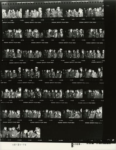 | Keywords: Ford B1935 NLGRF photo contact sheet (1976-10-21)(Gerald Ford Library).jpg White House Photographic Office WHPO is housed at the Gerald R Ford Presidential Library a branch of the National Archives and Records Administration NARA <br/><br/> This file is a 200 dpi photo contact sheet having images from roll of film B1935 of the August 9 1974 - January 20 1977 Gerald R Ford White House Photographic Office Series A0001-A9999 and B0001-B2886 photographs <br/><br/> The date on the photo contact sheet is the date the roll of film was processed not necessarily the date the photographs were taken See table below for additional details 1976-10-21 Gerald R Ford Presidential Library Image http //www fordlibrarymuseum gov/library/whphotos/B1935_NLGRF jpg B1935_NLGRF jpg from http //www fordlibrarymuseum gov/library/whphotos/19761021whpo pdf White House Photographs October 21 1976 of the http //www fordlibrarymuseum gov/Library/whphotos/whpo asp White House Photographic Collection page White House Photographic Office WHPO - Fitz-Patrick PD-USGov Institution Institution Gerald R Ford Presidential Library Table wikitable sortable + Photo contact sheet B1935 U S President Ford Administration Gerald R Ford Library Frame s Tone Subject proper Subject generic Names Geographic Location Photographer Date - 2-33 BW Trip to New York City -Prior to Departure for John F Kennedy JFK Airport handshaking saying goodbye; all not in every frame; night shots GRF Police Officers Firemen Others New York City NY Wall Street Helipad Fitz-Patrick 1976-10-21 Gerald R Ford Presidential Library and Museum-cooperation PD-USGov Contact sheets by the Ford White House October 1976 |
