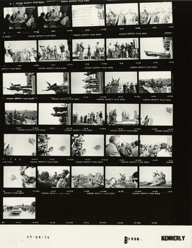 Keywords: Ford B1996 NLGRF photo contact sheet (1976-10-24)(Gerald Ford Library).jpg White House Photographic Office WHPO is housed at the Gerald R Ford Presidential Library a branch of the National Archives and Records Administration NARA <br/><br/> This file is a 200 dpi photo contact sheet having images from roll of film B1996 of the August 9 1974 - January 20 1977 Gerald R Ford White House Photographic Office Series A0001-A9999 and B0001-B2886 photographs <br/><br/> The date on the photo contact sheet is the date the roll of film was processed not necessarily the date the photographs were taken See table below for additional details 1976-10-24 Gerald R Ford Presidential Library Image http //www fordlibrarymuseum gov/library/whphotos/B1996_NLGRF jpg B1996_NLGRF jpg from http //www fordlibrarymuseum gov/library/whphotos/19761024whpo pdf White House Photographs October 24 1976 of the http //www fordlibrarymuseum gov/Library/whphotos/whpo asp White House Photographic Collection page White House Photographic Office WHPO <br/> Creator David Hume Kennerly PD-USGov Institution Institution Gerald R Ford Presidential Library Table wikitable sortable + Photo contact sheet B1996 U S President Ford Administration Gerald R Ford Library Frame s Tone Subject proper Subject generic Names Geographic Location Photographer Date - 1-2 BW Campaign Trip to California seated ariund breakfast table; eating talking GRF Cheney Joe Garagiola Unidentified Man Pasadena CA Huntington-Sheraton Inn - Porteous Cottage Kennerly 1976-10-24 - 3 BW Campaign Trip to California; Arrival for Campaign Rally in Fountain Valley -Fountain Valley California GRF standing waving in limousine in background; secret service car in foreground; fire engine on right; going under large flag GRF Secret Service Firemen Others Fountain Valley CA Street Kennerly 1976-10-24 - 4-6 BW Campaign Trip to California; Prior to Campaign Rally in Fountain Valley; Actor - Fountain Valley California walking waving GRF John Wayne Fountain Valley CA Fountain Valley Recreation Center Kennerly 1976-10-24 - 7-9 BW Campaign Trip to California; Prior to Campaign Rally in Fountain Valley; Actor - Fountain Valley California greeting handshaking on stage; all not in every frame GRF John Wayne; Platform Guests Fountain Valley CA Fountain Valley Recreation Center Kennerly 1976-10-24 - 10-12 BW Campaign Trip to California; Campaign Rally in Fountain Valley - Fountain Valley California standing on stage both arms raised over head waving various angles GRF Crowd Fountain Valley CA Fountain Valley Recreation Center Kennerly 1976-10-24 - 13 BW Campaign Trip to California; Campaign Rally in Fountain Valley; Actor - Fountain Valley California standing on stage for anthem; GRF with hand over heart GRF John Wayne; Platform Guests Fountain Valley CA Fountain Valley Recreation Center Kennerly 1976-10-24 - 14-17 BW Campaign Trip to California; Campaign Rally in Fountain Valley; Actor - Fountain Valley California GRF at lectern waving speaking; various angles and distances; all not in every frame GRF John Wayne; Platform Guests Fountain Valley CA Fountain Valley Recreation Center Kennerly 1976-10-24 - 18-23 BW Campaign Trip to California; Campaign Rally in Fountain Valley; Actor - Fountain Valley California walking; red white and blue hot air balloon in air in background GRF John Wayne; Others Fountain Valley CA Fountain Valley Recreation Center Kennerly 1976-10-24 - 24-27 BW Campaign Trip to California; Campaign Rally in Fountain Valley; Actor - Fountain Valley California walking greeting handshaking talking; red white and blue hot air balloon in air in background; all not in every frame GRF John Wayne; Crowd Fountain Valley CA Fountain Valley Recreation Center Kennerly 1976-10-24 - 28-31 BW Campaign Trip to California; Following Campaign Rally in Fountain Valley; Actor -Fountain Valley California GRF seated on limousine roof speaking holding microphone; Wayne standing up through sun roof; various angles and distances; all not in every frame GRF John Wayne; Crowd Fountain Valley CA Fountain Valley Recreation Center Kennerly 1976-10-24 Gerald R Ford Presidential Library and Museum-cooperation PD-USGov Contact sheets by the Ford White House October 1976 Photographs by David Hume Kennerly from 1976 |