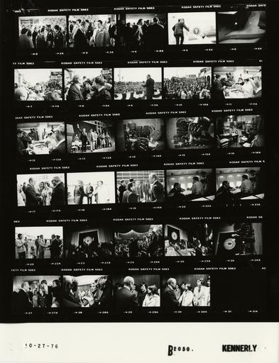 Keywords: Ford B2030 NLGRF photo contact sheet (1976-10-27)(Gerald Ford Library).jpg White House Photographic Office WHPO is housed at the Gerald R Ford Presidential Library a branch of the National Archives and Records Administration NARA <br/><br/> This file is a 200 dpi photo contact sheet having images from roll of film B2030 of the August 9 1974 - January 20 1977 Gerald R Ford White House Photographic Office Series A0001-A9999 and B0001-B2886 photographs <br/><br/> The date on the photo contact sheet is the date the roll of film was processed not necessarily the date the photographs were taken See table below for additional details 1976-10-27 Gerald R Ford Presidential Library Image http //www fordlibrarymuseum gov/library/whphotos/B2030_NLGRF jpg B2030_NLGRF jpg from http //www fordlibrarymuseum gov/library/whphotos/19761027whpo pdf White House Photographs October 27 1976 of the http //www fordlibrarymuseum gov/Library/whphotos/whpo asp White House Photographic Collection page White House Photographic Office WHPO <br/> Creator David Hume Kennerly PD-USGov Institution Institution Gerald R Ford Presidential Library Table wikitable sortable + Photo contact sheet B2030 U S President Ford Administration Gerald R Ford Library Frame s Tone Subject proper Subject generic Names Geographic Location Photographer Date - 7-10 BW Campaign Trip to New Jersey - Rally on the Boardwalk Atlantic City GRF at lectern speaking; various angles and distances; all not in every frame GRF Howard Haneman Joseph Lazarow Miss America Dorothy Benham Alfred Mr Marks Crowd Atlantic City NJ Haddon Hall Hotel - Boardwalk in Front Kennerly 1976-10-27 - 11-12 BW Campaign Trip to New Jersey - Following Rally on the Boardwalk Atlantic City GRF reaching over counter handshaking with employees; all not oin both frames GRF Employees Others Atlantic City NJ Unidentified Saltwater Taffy Store Kennerly 1976-10-27 - 13 BW Campaign Trip to New Jersey - 24th Annual New Jersey School Boards Association Convention GRF on stage waving; man standing next to GRF; others standing applauding in background GRF Platform Guests Atlantic City NJ Haddon Hall Hotel - Pennsylvania Ballroom Kennerly 1976-10-27 - 14-16 BW Campaign Trip to New Jersey seated talking amid folded chairs and tables; man taking nots; various angles and distances Cheney Reporter Atlantic City NJ Haddon Hall Hotel - Storeroom Kennerly 1976-10-27 - 17 BW Campaign Trip to New Jersey standing talking; GRF handshaking with woman GRF Unidentifed Man Women Atlantic City NJ Haddon Hall Hotel - Outside Kennerly 1976-10-27 - 18-19 BW Campaign Trip to New Jersey - Prior to Departure for Philadelphia Pennsylvania handshaking saying goodbye; various angles and distances; all not in frames GRF Others Atlantic City NJ National Aviation Facilities Experimental Center -NAFEC Kennerly 1976-10-27 - 20-21 BW Flight from Atlanto City New Jersey to Philadelphia PA seated standing around table; talking; all not in frames Cheney Cavaney Hyland Ingersoll Schneider Others Air Force One Kennerly 1976-10-27 - 22 BW Campaign Trip to Pennsylvania - Arrival in Philadelphia GRF and Jack greeting handshaking smiling GRF Jack Ford Others Philadelphia PA Philadelphia International Airport Kennerly 1976-10-27 - 23-26 BW Campaign Trip to Pennsylvania; Rally at Villanova University - Villanova Pennsylvania GRF at lectern waving speaking; various angles and distances; all not in every frame GRF J Cleary A Donato Sen Schweiker Rev J Driscoll J Nolan Jack Ford Rep Schulze Fr Deegan; Crowd Villanova PA Villanova University Fieldhouse Kennerly 1976-10-27 - 27-30 BW Campaign Trip to Pennsylvania; Meeting with Villanova University Student Leaders - Villanova Pennsylvania standing talking greeting handshaking; all not in frames GRF Rev Driscoll Villanova Student Leaders; Others Villanova PA Villanova University Fieldhouse - Holding Rooms A B Kennerly 1976-10-27 - 2-4 BW Campaign Trip to Illinois - Prior to Departure for O'Hare International Airport handshaking saying goodbye; all not in every frame GRF Police Officers Others Arlington Heights IL Arlington Park Hilton Hotel Kennerly 1976-10-27 - 5 BW Campaign Trip to Illinois - Prior ro Departure for Atlantic City New Jersey GRF walking up steps to Air Force One; handshaking with man over handrail GRF Unidentified Man Chicago IL O'Hare International Airport Kennerly 1976-10-27 - 6 BW Kennerly 1976-10-27 Gerald R Ford Presidential Library and Museum-cooperation PD-USGov Contact sheets by the Ford White House October 1976 Photographs by David Hume Kennerly from 1976 |