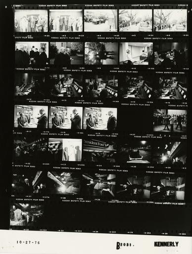 Keywords: Ford B2031 NLGRF photo contact sheet (1976-10-27)(Gerald Ford Library).jpg White House Photographic Office WHPO is housed at the Gerald R Ford Presidential Library a branch of the National Archives and Records Administration NARA <br/><br/> This file is a 200 dpi photo contact sheet having images from roll of film B2031 of the August 9 1974 - January 20 1977 Gerald R Ford White House Photographic Office Series A0001-A9999 and B0001-B2886 photographs <br/><br/> The date on the photo contact sheet is the date the roll of film was processed not necessarily the date the photographs were taken See table below for additional details 1976-10-27 Gerald R Ford Presidential Library Image http //www fordlibrarymuseum gov/library/whphotos/B2031_NLGRF jpg B2031_NLGRF jpg from http //www fordlibrarymuseum gov/library/whphotos/19761027whpo pdf White House Photographs October 27 1976 of the http //www fordlibrarymuseum gov/Library/whphotos/whpo asp White House Photographic Collection page White House Photographic Office WHPO <br/> Creator David Hume Kennerly PD-USGov Institution Institution Gerald R Ford Presidential Library Table wikitable sortable + Photo contact sheet B2031 U S President Ford Administration Gerald R Ford Library Frame s Tone Subject proper Subject generic Names Geographic Location Photographer Date - 2-3 BW Campaign Trip to Pennsylvania; Meeting with Villanova University Student Leaders - Villanova Pennsylvania standing posing under Villanova University banner; all not in frames GRF Rev Driscoll Villanova Student Leaders; Others Villanova PA Villanova University Fieldhouse - Holding Rooms A B Kennerly 1976-10-27 - 4-6 BW Campaign Trip to Pennsylvania; Motorcade to Residence of John Cardinal Krol - Villanova Pennsylvania GRF standing through sun roof of limousine waving; crowd on sidewalk; limousine moving away from camera GRF Secret Service Crowd Villanova PA Villanova University Fieldhouse - Outside Kennerly 1976-10-27 - 7 BW Campaign Trip to Pennsylvania - Meeting with Head of the Archdiocese of Philadelphia greeting handshaking standing talking GRF Cardinal Krol Other Priests Philadelphia PA Cardinal Krol's Residence Kennerly 1976-10-27 - 8-9 BW Campaign Trip to Pennsylvania - Meeting with Head of the Archdiocese of Philadelphia walking talking in garden; various angles and distances GRF John Cardinal Krol Philadelphia PA Cardinal Krol's Residence - Outside Kennerly 1976-10-27 - 10 BW Campaign Trip to Pennsylvania - Prior to WPVI-TV Interview greeting handshaking talking GRF Unidentified Woman Philadelphia PA WPVI-TV Studios Kennerly 1976-10-27 - 11-16 BW Campaign Trip to Pennsylvania - WPVI-TV Interview operating video and audio boards looking at monitors; various angles and distances; all not in every frame Technicians Director Producer Philadelphia PA Control Room - WPVI-TV Studios Kennerly 1976-10-27 - 17-19 BW Campaign Trip to Pennsylvania talking; Cheney seated on corner of desk; GRF standing holding smoking pipe; Cavaney in background by desk GRF Cheney Cavaney Philadelphia PA WPVI-TV Studios - Holding Room Kennerly 1976-10-27 - 20 BW Kennerly 1976-10-27 - 21-22 BW Campaign Trip to Pennsylvania - Fundraising Dinner Hosted by Philadelphia County Republican Executive Committee GRF entering room; walking waving; greeting handshaking in 2nd frame; various angles and distances; all not in every frame GRF Others Philadelphia PA Philadelphia Civic Center Kennerly 1976-10-27 - 23 BW Campaign Trip to Pennsylvania - Fundraising Dinner Hosted by Philadelphia County Republican Executive Committee GRF walking on stage waving; others applauding; half of photo overexposed GRF Platform Guests Philadelphia PA Philadelphia Civic Center Kennerly 1976-10-27 - 24 BW Campaign Trip to Pennsylvania - Fundraising Dinner Hosted by Philadelphia County Republican Executive Committee GRF at lectern; both arms outstretched GRF Platform Guests Philadelphia PA Philadelphia Civic Center Kennerly 1976-10-27 - 25 BW Campaign Trip to Pennsylvania - Motorcade to Plymouth Meeting Mall GRF standing through sun roof of limousine waving; crowd on sidewalk; limousine moving away from camera; secret service car in foreground; night shot GRF Secret Service Crowd Philadelphia PA Street Kennerly 1976-10-27 - 26-32 BW Campaign Trip to Pennsylvania - Campaign Rally at the Plymouth Meeting Mall standing at lectern waving gesturing speaking; various angles and distances; all not in every frame GRF; Platform Guests Crowd Plymouth Meeting PA Plymouth Meeting Mall Kennerly 1976-10-27 Gerald R Ford Presidential Library and Museum-cooperation PD-USGov Contact sheets by the Ford White House October 1976 Photographs by David Hume Kennerly from 1976 |