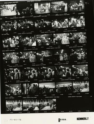 | Keywords: Ford B2058 NLGRF photo contact sheet (1976-11-01)(Gerald Ford Library).jpg White House Photographic Office WHPO is housed at the Gerald R Ford Presidential Library a branch of the National Archives and Records Administration NARA <br/><br/> This file is a 200 dpi photo contact sheet having images from roll of film B2058 of the August 9 1974 - January 20 1977 Gerald R Ford White House Photographic Office Series A0001-A9999 and B0001-B2886 photographs <br/><br/> The date on the photo contact sheet is the date the roll of film was processed not necessarily the date the photographs were taken See table below for additional details 1976-11-01 Gerald R Ford Presidential Library Image http //www fordlibrarymuseum gov/library/whphotos/B2058_NLGRF jpg B2058_NLGRF jpg from http //www fordlibrarymuseum gov/library/whphotos/19761101whpo pdf White House Photographs November 1 1976 of the http //www fordlibrarymuseum gov/Library/whphotos/whpo asp White House Photographic Collection page White House Photographic Office WHPO <br/> Creator David Hume Kennerly PD-USGov Institution Institution Gerald R Ford Presidential Library Table wikitable sortable + Photo contact sheet B2058 U S President Ford Administration Gerald R Ford Library Frame s Tone Subject proper Subject generic Names Geographic Location Photographer Date - 1 BW Campaign Trip to Michigan - Arrival in Grand Rapids standing in terminal; BF cut off GRF Betty Ford Others Grand Rapids MI Kent County Airport - Terminal Kennerly 1976-11-01 - 2-8 BW Campaign Trip to Michigan - Motorcade to the Pantlind Hotel GRF BF and Couple standing in open limousine waving; secret service walking alongside; crowd on either side of streets; various angles and distance; all not in every frame; night shots GRF Betty Ford Unidentified Couple Secret Service; Crowd Grand Rapids MI Downtown Streets Kennerly 1976-11-01 - 9-12 BW Campaign Trip to Michigan - Arival for Rally in Front of the Pantlind Hotel GRF and BF walking through crowd; greeting handshaking laughing; approaching camera; all not in every frame; night shots GRF Betty Ford Secret Service Crowd Grand Rapids MI Pantlind Hotel -Outside Kennerly 1976-11-01 - 13-24 BW Campaign Trip to Michigan - Rally in Front of the Pantlind Hotel GRF at lectern talking waving smiling laughing gesturing; others in background applauding smiling; all not in every frame; various angles and distances; all not in every frame; night shots GRF Betty Ford Sen Griffin Others Grand Rapids MI Pantlind Hotel -Outside Kennerly 1976-11-01 - 25-26 BW Campaign Trip to Michigan - Rally in Front of the Pantlind Hotel GRF and BF embracing at lectern; others standing applauding; all not in both frames; night shots GRF Betty Ford Sen Griffin Gov Milliken Others Grand Rapids MI Pantlind Hotel -Outside Kennerly 1976-11-01 - 27 BW Campaign Trip to Michigan - Following Rally in Front of the Pantlind Hotel talking in doorway; night shot Betty Ford Boy Scout Grand Rapids MI Pantlind Hotel -Outside Kennerly 1976-11-01 - 28-29 BW Campaign Trip to Michigan - Rally at Grand Rapids Junior College GRF on stage with man and woman; man not in both frames GRF Unidentified Man Woman Grand Rapids MI Grand Rapids Junior College - Gerald R Ford Health Physical Education Center Kennerly 1976-11-01 - 30-33 BW Campaign Trip to Michigan - Rally at Grand Rapids Junior College GRF at lectern; others seated behind; crowd seated on right of frame; medium range shots from left of GRF; all not in every frame Betty Ford; Philip Runkel Vernis Schad Rev Abney Rev Littlefair Lumen Winter Gerald Elliott Grand Rapids Board of Education Members; Crowd Grand Rapids MI Grand Rapids Junior College - Gerald R Ford Health Physical Education Center Kennerly 1976-11-01 Gerald R Ford Presidential Library and Museum-cooperation PD-USGov Contact sheets by the Ford White House November 1976 Photographs by David Hume Kennerly from 1976 |