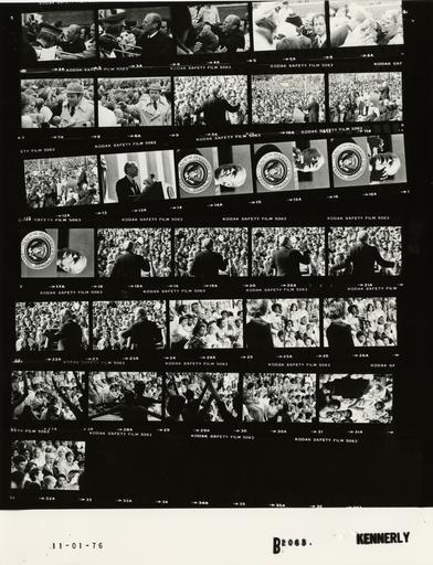 Keywords: Ford B2063 NLGRF photo contact sheet (1976-11-01)(Gerald Ford Library).jpg White House Photographic Office WHPO is housed at the Gerald R Ford Presidential Library a branch of the National Archives and Records Administration NARA <br/><br/> This file is a 200 dpi photo contact sheet having images from roll of film B2063 of the August 9 1974 - January 20 1977 Gerald R Ford White House Photographic Office Series A0001-A9999 and B0001-B2886 photographs <br/><br/> The date on the photo contact sheet is the date the roll of film was processed not necessarily the date the photographs were taken See table below for additional details 1976-11-01 Gerald R Ford Presidential Library Image http //www fordlibrarymuseum gov/library/whphotos/B2063_NLGRF jpg B2063_NLGRF jpg from http //www fordlibrarymuseum gov/library/whphotos/19761101whpo pdf White House Photographs November 1 1976 of the http //www fordlibrarymuseum gov/Library/whphotos/whpo asp White House Photographic Collection page White House Photographic Office WHPO <br/> Creator David Hume Kennerly PD-USGov Institution Institution Gerald R Ford Presidential Library Table wikitable sortable + Photo contact sheet B2063 U S President Ford Administration Gerald R Ford Library Frame s Tone Subject proper Subject generic Names Geographic Location Photographer Date - 26-6A BW Campaign Trip to Ohio - Rally at Ohio State Capitol Building greeting handshaking; close ups; all not in every frame GRF Band Others Columbus OH Ohio State Capitol Building -Outside Kennerly 1976-11-01 - 7A-8A BW Campaign Trip to Ohio - Rally at Ohio State Capitol Building talking; Garagiola wearing overcoat and houndstooth hat; all not in both frames Joe Garagiola Crowd Columbus OH Ohio State Capitol Building -Outside Kennerly 1976-11-01 - 9A-13A BW Campaign Trip to Ohio - Rally at Ohio State Capitol Building GRF at lectern speaking; back to camera in most frames; various angles and distances; all not in every frame GRF Platform Guests Crowd Others Columbus OH Ohio State Capitol Building -Outside Kennerly 1976-11-01 - 14A-17A BW Campaign Trip to Ohio - Rally at Ohio State Capitol Building at lectern speaking gesturing; close ups; Presidential Seal in foreground; taken from lower vantage point GRF Columbus OH Ohio State Capitol Building -Outside Kennerly 1976-11-01 - 18A-23A BW Campaign Trip to Ohio - Rally at Ohio State Capitol Building at lectern speaking gesturing back to camera; crowd seated in background; close ups GRF Crowd Columbus OH Ohio State Capitol Building -Outside Kennerly 1976-11-01 - 24A BW Campaign Trip to Ohio - Rally at Fort Hayes Career Center seated listening Members of Performing Arts Department Others Columbus OH Fort Hayes Career Center - Mall Area Kennerly 1976-11-01 - 25A-26A BW Campaign Trip to Ohio - Rally at Fort Hayes Career Center BF speaking back to camera; GRF and others seated listening GRF Betty Ford; Members of Performing Arts Department Others Columbus OH Fort Hayes Career Center - Mall Area Kennerly 1976-11-01 - 27A-29A BW Campaign Trip to Ohio - Rally at Fort Hayes Career Center GRF and others seated listening; performers in foreground backs to camera out of focus GRF Members of Performing Arts Department Others Columbus OH Fort Hayes Career Center - Mall Area Kennerly 1976-11-01 - 301-32A BW Campaign Trip to Ohio - Rally at Fort Hayes Career Center GRF seated standing in crowd speaking; crowd seated; all not in every frame GRF Others Columbus OH Fort Hayes Career Center - Mall Area Kennerly 1976-11-01 Gerald R Ford Presidential Library and Museum-cooperation PD-USGov Contact sheets by the Ford White House November 1976 Photographs by David Hume Kennerly from 1976 |