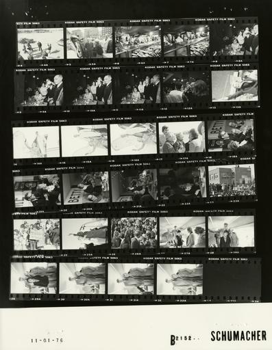 Keywords: Ford B2152 NLGRF photo contact sheet (1976-11-01)(Gerald Ford Library).jpg White House Photographic Office WHPO is housed at the Gerald R Ford Presidential Library a branch of the National Archives and Records Administration NARA <br/><br/> This file is a 200 dpi photo contact sheet having images from roll of film B2152 of the August 9 1974 - January 20 1977 Gerald R Ford White House Photographic Office Series A0001-A9999 and B0001-B2886 photographs <br/><br/> The date on the photo contact sheet is the date the roll of film was processed not necessarily the date the photographs were taken See table below for additional details 1976-11-01 Gerald R Ford Presidential Library Image http //www fordlibrarymuseum gov/library/whphotos/B2152_NLGRF jpg B2152_NLGRF jpg from http //www fordlibrarymuseum gov/library/whphotos/19761101whpo pdf White House Photographs November 1 1976 of the http //www fordlibrarymuseum gov/Library/whphotos/whpo asp White House Photographic Collection page White House Photographic Office WHPO - Schumacher PD-USGov Institution Institution Gerald R Ford Presidential Library Table wikitable sortable + Photo contact sheet B2152 U S President Ford Administration Gerald R Ford Library Frame s Tone Subject proper Subject generic Names Geographic Location Photographer Date - 14A-16A BW Betty Ford Campaign Trip to Pennsylvania - Arrival in Harrisburg -Actor walking down steps from Tristar Aircraft plane ; BF waving Betty Ford Chuck Connors Harrisburg PA Harrisburg Capitol City Airport Schumacher 1976-11-01 - 17A BW Betty Ford Campaign Trip to Pennsylvania - Arrival in Harrisburg greeting handshaking; nose of Tristar Aircraft plane in background Betty Ford Others Harrisburg PA Harrisburg Capitol City Airport Schumacher 1976-11-01 - 18A-19A BW Betty Ford Campaign Trip to Pennsylvania - Rotary Club Luncheon Unidentified Man standing; BF and others seated at head table smiling; all not in every frame Betty Ford Rotary Club Members Others Harrisburg PA Holiday Inn-Town Schumacher 1976-11-01 - 20A-21A BW Betty Ford Campaign Trip to Pennsylvania - Rotary Club Luncheon BF at lectern speaking; others seated at head table; all not in every frame Betty Ford Rotary Club Members Others Harrisburg PA Holiday Inn-Town Schumacher 1976-11-01 - 22A BW Betty Ford Campaign Trip to Pennsylvania - Rotary Club Luncheon BF seated at table man leaning talking Betty Ford Unidentified Man Harrisburg PA Holiday Inn-Town Schumacher 1976-11-01 - 23A BW Betty Ford Campaign Trip to Pennsylvania BF talking on stage; others on platform; crowd in foreground; several large signs on building wall in background Betty Ford Chuck Connors Crowd Others Harrisburg PA Holiday Inn-Town - Outside Schumacher 1976-11-01 - 24A BW Betty Ford Campaign Trip to Pennsylvania holding signs; close ups Several People in Crowd Harrisburg PA Holiday Inn-Town - Outside Schumacher 1976-11-01 - 25A BW Betty Ford Campaign Trip to Pennsylvania at lectern waving; close up Betty Ford Harrisburg PA Holiday Inn-Town - Outside Schumacher 1976-11-01 - 26A BW Betty Ford Campaign Trip to Pennsylvania - Prior to Departure for Michigan greeting handshaking mingling Betty Ford Secret Service Crowd Harrisburg PA Holiday Inn-Town - Outside Schumacher 1976-11-01 - 27A-32A BW Flight to Detroit Michigan standing posing; various distances; all not in every frame; aircraft plane Betty Ford Weidenfeld Chuck Connors Others Aboard Tri-Star Aircraft plane Schumacher 1976-11-01 Gerald R Ford Presidential Library and Museum-cooperation PD-USGov Contact sheets by the Ford White House November 1976 |