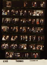Keywords: Ford B2485 NLGRF photo contact sheet (1976-12-11)(Gerald Ford Library).jpg White House Photographic Office WHPO is housed at the Gerald R Ford Presidential Library a branch of the National Archives and Records Administration NARA <br/><br/> This file is a 200 dpi photo contact sheet having images from roll of film B2485 of the August 9 1974 - January 20 1977 Gerald R Ford White House Photographic Office Series A0001-A9999 and B0001-B2886 photographs <br/><br/> The date on the photo contact sheet is the date the roll of film was processed not necessarily the date the photographs were taken See table below for additional details 1976-12-11 Gerald R Ford Presidential Library Image http //www fordlibrarymuseum gov/library/whphotos/B2485_NLGRF jpg B2485_NLGRF jpg from http //www fordlibrarymuseum gov/library/whphotos/19761211whpo pdf White House Photographs December 11 1976 of the http //www fordlibrarymuseum gov/Library/whphotos/whpo asp White House Photographic Collection page White House Photographic Office WHPO - Thomas PD-USGov Institution Institution Gerald R Ford Presidential Library Table wikitable sortable + Photo contact sheet B2485 U S President Ford Administration Gerald R Ford Library Frame s Tone Subject proper Subject generic Names Geographic Location Photographer Date - Color Prior to Dinner for the Secretary of Defense Service Secretaries Joint Chiefs of Staff and Commanders of the Unified Commands descending steps; formal wear; camera malfunction GRF Betty Ford Grand Staircase Thomas 1976-12-11 - Color Prior to Dinner for the Secretary of Defense Service Secretaries Joint Chiefs of Staff and Commanders of the Unified Commands greeting handshaking standing talking; formal wear; all not in frames GRF Betty Ford Martin R Hoffmann Reed Gens G Brown Jones D Brown Rogers Wilson Hennesey James Daugherty Huyser; Lt Gen McAuliffe; Adms Holloway Siler Kidd Weisner; Hyland; Spouses Entrance Hall/Grand Hall Thomas 1976-12-11 - Color Prior to Dinner for the Secretary of Defense Service Secretaries Joint Chiefs of Staff and Commanders of the Unified Commands greeting handshaking; formal wear GRF Sec Mrs Clements Entrance Hall/Grand Hall Thomas 1976-12-11 - Color Prior to Dinner for the Secretary of Defense Service Secretaries Joint Chiefs of Staff and Commanders of the Unified Commands greeting handshaking standing talking ; formal wear GRF Gen Mrs Daniel James Entrance Hall/Grand Hall Thomas 1976-12-11 - Color Prior to Dinner for the Secretary of Defense Service Secretaries Joint Chiefs of Staff and Commanders of the Unified Commands greeting handshaking standing talking; formal wear; all not in frames GRF Betty Ford Martin R Hoffmann Reed Gens G Brown Jones D Brown Rogers Wilson Hennesey James Daugherty Huyser; Lt Gen McAuliffe; Adms Holloway Siler Kidd Weisner; Hyland; Spouses Entrance Hall/Grand Hall Thomas 1976-12-11 - Color Prior to Dinner for the Secretary of Defense Service Secretaries Joint Chiefs of Staff and Commanders of the Unified Commands greeting handshaking standing talking; formal wear GRF Rumsfeld Unidentified Man Entrance Hall/Grand Hall Thomas 1976-12-11 - Color Prior to Dinner for the Secretary of Defense Service Secretaries Joint Chiefs of Staff and Commanders of the Unified Commands greeting handshaking standing talking; formal wear Betty Ford Unidentified Couple Entrance Hall/Grand Hall Thomas 1976-12-11 - Color Prior to Dinner for the Secretary of Defense Service Secretaries Joint Chiefs of Staff and Commanders of the Unified Commands standing talking; formal wear; GRF holding glass GRF Unidentified Man Entrance Hall/Grand Hall Thomas 1976-12-11 - Color Prior to Dinner for the Secretary of Defense Service Secretaries Joint Chiefs of Staff and Commanders of the Unified Commands standing talking; formal wear Scowcroft Gen G Brown Unidentified Officer Entrance Hall/Grand Hall Thomas 1976-12-11 - Color Prior to Dinner for the Secretary of Defense Service Secretaries Joint Chiefs of Staff and Commanders of the Unified Commands standing talking; formal wear Betty Ford Gen Mrs Daniel James Entrance Hall/Grand Hall Thomas 1976-12-11 - Color Prior to Dinner for the Secretary of Defense Service Secretaries Joint Chiefs of Staff and Commanders of the Unified Commands standing talking; formal wear; all not in frames Betty Ford Martin R Hoffmann Reed D Brown Rogers Wilson Hennesey Daugherty Huyser; Lt Gen McAuliffe; Adms Holloway Siler Kidd Weisner; Hyland; Spouses Entrance Hall/Grand Hall Thomas 1976-12-11 - Color Prior to Dinner for the Secretary of Defense Service Secretaries Joint Chiefs of Staff and Commanders of the Unified Commands standing talking; formal wear; Mrs Brown in last frame only GRF Gen G Mrs Brown Entrance Hall/Grand Hall Thomas 1976-12-11 - Color Prior to Dinner for the Secretary of Defense Service Secretaries Joint Chiefs of Staff and Commanders of the Unified Commands greeting handshaking; formal wear; camera malfunction GRF Others Entrance Hall/Grand Hall Thomas 1976-12-11 Gerald R Ford Presidential Library and Museum-cooperation PD-USGov Contact sheets by the Ford White House December 1976 |