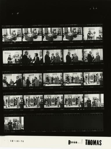 | Keywords: Ford B2533 NLGRF photo contact sheet (1976-12-16)(Gerald Ford Library).jpg  White House Photographic Office WHPO is housed at the Gerald R Ford Presidential Library a branch of the National Archives and Records Administration NARA <br/><br/> This file is a 200 dpi photo contact sheet having images from roll of film B2533 of the August 9 1974 - January 20 1977 Gerald R Ford White House Photographic Office Series A0001-A9999 and B0001-B2886 photographs <br/><br/> The date on the photo contact sheet is the date the roll of film was processed not necessarily the date the photographs were taken See table below for additional details 1976-12-16 Gerald R Ford Presidential Library Image http //www fordlibrarymuseum gov/library/whphotos/B2533_NLGRF jpg B2533_NLGRF jpg from http //www fordlibrarymuseum gov/library/whphotos/19761216whpo pdf White House Photographs December 16 1976 of the http //www fordlibrarymuseum gov/Library/whphotos/whpo asp White House Photographic Collection page White House Photographic Office WHPO - Thomas PD-USGov Institution Institution Gerald R Ford Presidential Library Table wikitable sortable + Photo contact sheet B2533 U S President Ford Administration Gerald R Ford Library Frame s Tone Subject proper Subject generic Names Geographic Location Photographer Date - 2A-5A BW Meeting with United States Senator and Representative from Michigan MI GRF and Ruppe seated at desk; Griffin standing to left of GRF GRF Sen Griffin Rep Ruppe Oval Office Thomas 1976-12-16 - 6A-7A BW Prior to Presentation by Representatives of a Frisian Society greeting embracing GRF Unidentified Woman either Dorothy Fridsma Ella Weed Mary Beth Rosenberg Oval Office Thomas 1976-12-16 - 8A-13A BW Prior to Presentation by Representatives of a Frisian Society greeting handshaking standing talking; all not in every frame GRF Bernard Dorothy Charles Fridsma; Ella Weed Mary Beth Rosenberg Christian Duvekot Oval Office Thomas 1976-12-16 - 14A-15A BW Prior to Presentation by Representatives of a Frisian Society standing posing GRF Bernard Dorothy Charles Fridsma; Ella Weed Mary Beth Rosenberg Christian Duvekot Oval Office Thomas 1976-12-16 - 16A-20A BW Presentation by Representatives of a Frisian Society standing posing behind large round bronze sculpture GRF Bernard Dorothy Charles Fridsma; Ella Weed Mary Beth Rosenberg Christian Duvekot Oval Office Thomas 1976-12-16 - 21A-22A BW Presentation by Representatives of a Frisian Society standing talking laughing; GRF's arms folded GRF Two Unidentified women either Dorothy Fridsma Ella Weed Mary Beth Rosenberg Oval Office Thomas 1976-12-16 Gerald R Ford Presidential Library and Museum-cooperation PD-USGov Contact sheets by the Ford White House December 1976  |