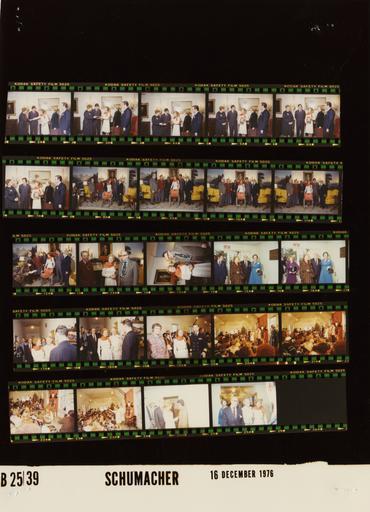 | Keywords: Ford B2539 NLGRF photo contact sheet (1976-12-16)(Gerald Ford Library).jpg White House Photographic Office WHPO is housed at the Gerald R Ford Presidential Library a branch of the National Archives and Records Administration NARA <br/><br/> This file is a 200 dpi photo contact sheet having images from roll of film B2539 of the August 9 1974 - January 20 1977 Gerald R Ford White House Photographic Office Series A0001-A9999 and B0001-B2886 photographs <br/><br/> The date on the photo contact sheet is the date the roll of film was processed not necessarily the date the photographs were taken See table below for additional details 1976-12-16 Gerald R Ford Presidential Library Image http //www fordlibrarymuseum gov/library/whphotos/B2539_NLGRF jpg B2539_NLGRF jpg from http //www fordlibrarymuseum gov/library/whphotos/19761216whpo pdf White House Photographs December 16 1976 of the http //www fordlibrarymuseum gov/Library/whphotos/whpo asp White House Photographic Collection page White House Photographic Office WHPO - Schumacher PD-USGov Institution Institution Gerald R Ford Presidential Library Table wikitable sortable + Photo contact sheet B2539 U S President Ford Administration Gerald R Ford Library Frame s Tone Subject proper Subject generic Names Geographic Location Photographer Date - 2A-7A Color Presentation of Special Award to Betty Ford from The President's Committee on Mental Retardation standing talking posing; BF receiving holding plaque Betty Ford David Mathews Fred Krause Lorraine Beede Jean Collier Unidentified Room Schumacher 1976-12-16 - 8A-12A Color Presentation of Wheelchair for Use in the White House by the Wilkes Barre Kiwanis Wheelchair Club standing posing behind wheelchair; various angles and distances; Weidenfeld in last frame only Betty Ford William Young George Strimel Nelson Carle James Burress W J Cahill; Weidenfeld Ground Floor -Diplomatic Reception Room Schumacher 1976-12-16 - 13A-14A Color Following Presentation of Wheelchair for Use in the White House by the Wilkes Barre Kiwanis Wheelchair Club standing posing; all not in frames Betty Ford William Young George Strimel Nelson Carle James Burress W J Cahill Ground Floor -Diplomatic Reception Room Schumacher 1976-12-16 - 15A-16A Color Arrival for Annual Hospital For Sick Children Christmas Party BF entering hospital wearing fur coat; others walking with her; all not in frames Betty Ford; Harrison Brand Mrs William Alexander Lorene Nagel Dale Lowe Washington DC Hospital for Sick Children - Lobby Schumacher 1976-12-16 - 17A-18A Color Arrival for Annual Hospital For Sick Children Christmas Party BF and Barnes greeting handshaking talking; Nagel standing to side Betty Ford; Lorene Nagel Adm Willis Barnes Washington DC Hospital for Sick Children - Holding Room Schumacher 1976-12-16 - 19A Color Arrival for Annual Hospital For Sick Children Christmas Party standing posing Betty Ford Adm Willis Barnes Unidentified Man Washington DC Hospital for Sick Children - Holding Room Schumacher 1976-12-16 - 20A-23A Color Annual Hospital For Sick Children Christmas Party BF on stage speaking; others in background on right; children seated to left of frame; various angles and distances; all not in every frame Betty Ford; Harrison Brand Mrs William Alexander Lorene Nagel Dale Lowe Santa Claus Children Washington DC Hospital for Sick Children - Activity Room Schumacher 1976-12-16 - 24A-25A Color Following Annual Hospital For Sick Children Christmas Party BF leaving hospital wearing fur coat; others walking with her; all not in frames Betty Ford; Harrison Brand Mrs William Alexander Lorene Nagel Dale Lowe Washington DC Hospital for Sick Children - Lobby Schumacher 1976-12-16 Gerald R Ford Presidential Library and Museum-cooperation PD-USGov Contact sheets by the Ford White House December 1976 Fur fashion in 1976 Mink clothing |