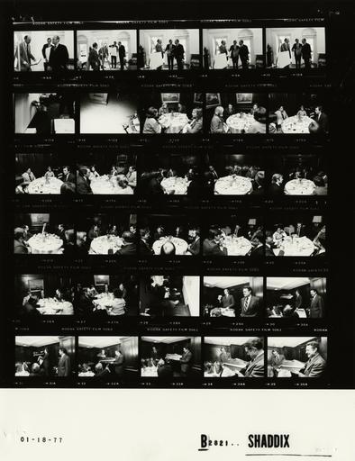 | Keywords: Ford B2821 NLGRF photo contact sheet (1977-01-17)(Gerald Ford Library).jpg White House Photographic Office WHPO is housed at the Gerald R Ford Presidential Library a branch of the National Archives and Records Administration NARA <br/><br/> This file is a 200 dpi photo contact sheet having images from roll of film B2821 of the August 9 1974 - January 20 1977 Gerald R Ford White House Photographic Office Series A0001-A9999 and B0001-B2886 photographs <br/><br/> The date on the photo contact sheet is the date the roll of film was processed not necessarily the date the photographs were taken See table below for additional details 1977-01-17 Gerald R Ford Presidential Library Image http //www fordlibrarymuseum gov/library/whphotos/B2821_NLGRF jpg B2821_NLGRF jpg from http //www fordlibrarymuseum gov/library/whphotos/19770117whpo pdf White House Photographs January 17 1977 of the http //www fordlibrarymuseum gov/Library/whphotos/whpo asp White House Photographic Collection page White House Photographic Office WHPO - Shaddix PD-USGov Institution Institution Gerald R Ford Presidential Library Table wikitable sortable + Photo contact sheet B2821 U S President Ford Administration Gerald R Ford Library Frame s Tone Subject proper Subject generic Names Geographic Location Photographer Date - 6A-10A BW Meeting with Director Central Intelligence Agency CIA standing talking setting up easel charts on easel; cowcroft not in every frame GRF Bush Scowcroft D Peterson Oval Office Shaddix 1977-01-17 - 11A-12A BW Shaddix 1977-01-17 - 13A-27A BW Jim Cannon Breakfast seated around tables eating talking; various angles and distances; all not in every frame Cannon Others Unidentified White House Staff Dining Room Shaddix 1977-01-17 - 28A-31A BW Jim Cannon Breakfast man standing at lectern speaking; Cannon standing at right of frame; man holding machete mounted on plank in last 2 frames Cannon Unidentified Man Others Unidentified White House Staff Dining Room Shaddix 1977-01-17 - 32A-33A BW Jim Cannon Breakfast man handing machete mounted on plank to Cannon Cannon Unidentified Man Others Unidentified White House Staff Dining Room Shaddix 1977-01-17 - 34A-35A BW Jim Cannon Breakfast Cannon holding machete mounted on plank laughing Cannon Unidentified Man Unidentified White House Staff Dining Room Shaddix 1977-01-17 Gerald R Ford Presidential Library and Museum-cooperation PD-USGov Contact sheets by the Ford White House January 1977 |
