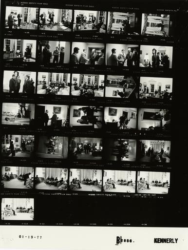 Keywords: Ford B2856 NLGRF photo contact sheet (1977-01-19)(Gerald Ford Library).jpg White House Photographic Office WHPO is housed at the Gerald R Ford Presidential Library a branch of the National Archives and Records Administration NARA <br/><br/> This file is a 200 dpi photo contact sheet having images from roll of film B2856 of the August 9 1974 - January 20 1977 Gerald R Ford White House Photographic Office Series A0001-A9999 and B0001-B2886 photographs <br/><br/> The date on the photo contact sheet is the date the roll of film was processed not necessarily the date the photographs were taken See table below for additional details 1977-01-19 Gerald R Ford Presidential Library Image http //www fordlibrarymuseum gov/library/whphotos/B2856_NLGRF jpg B2856_NLGRF jpg from http //www fordlibrarymuseum gov/library/whphotos/19770119whpo pdf White House Photographs January 19 1977 of the http //www fordlibrarymuseum gov/Library/whphotos/whpo asp White House Photographic Collection page White House Photographic Office WHPO <br/> Creator David Hume Kennerly PD-USGov Institution Institution Gerald R Ford Presidential Library Table wikitable sortable + Photo contact sheet B2856 U S President Ford Administration Gerald R Ford Library Frame s Tone Subject proper Subject generic Names Geographic Location Photographer Date - 2-4 BW GRF seated at desk; others moving around office; all not in every frame GRF Marsh Cavanaugh Scowcroft Unidentified Man Oval Office Kennerly 1977-01-19 - 5 BW GRF seated at desk; BS standing nearby back to camera GRF Scowcroft Oval Office Kennerly 1977-01-19 - 6-7 BW walking away from desk; desk bare except for phone and glass of water GRF Oval Office Kennerly 1977-01-19 - 8 BW standing talking GRF Marsh Unidentified Man Marsh's son White House Hallway Kennerly 1977-01-19 - 9-10 BW greeting handshaking standing talking GRF Three Unidentified Men White House Hallway Kennerly 1977-01-19 - 11-12 BW greeting handshaking standing talking GRF Army Major General Unidentified Man Oval Office Kennerly 1977-01-19 - 13-14 BW seated talking near fireplace; desk in background GRF Army Major General Unidentified Man Oval Office Kennerly 1977-01-19 - 15-16 BW taking seats in 1st frame; seated around desk talking GRF Barrett Oval Office Kennerly 1977-01-19 - 17 BW BF standing in foreground wearing housecoat robe ; GRF seated in background smoking pipe; fett up on coffee table GRF Betty Ford Second Floor - West Sitting Room Kennerly 1977-01-19 - 18-19 BW Prior to Dinner with Vice President Rockefeller's Family greeting handshaking talking; Happy not in 1st frame GRF Rockefeller Happy Rockefeller Second Floor - Center Hall Kennerly 1977-01-19 - 20 BW Prior to Dinner with Vice President Rockefeller's Family - Sons of VP Rockefeller greeting handshaking GRF Mark David Rockefeller Second Floor - Center Hall Kennerly 1977-01-19 - 21 BW Prior to Dinner with Vice President Rockefeller's Family - Sons of VP Rockefeller - Prior to Boys Staying Overnight/Sleepover in Lincoln Bedroom GRF walking away; boys picking up suitcases board games GRF Mark David Rockefeller Second Floor - Center Hall Kennerly 1977-01-19 - 22-23 BW Prior to Dinner with Vice President Rockefeller's Family - Sons of VP Rockefeller - Prior to Boys Staying Overnight/Sleepover in Lincoln Bedroom walking away; boys carying suitcases board games; backs to camera Mark David Rockefeller Second Floor - Center Hall Kennerly 1977-01-19 - 24-26 BW Prior to Dinner with Vice President Rockefeller's Family - Sons of VP Rockefeller - Prior to Boys Staying Overnight/Sleepover in Lincoln Bedroom walking toward camera talking GRF Mark David Rockefeller Second Floor - Center Hall Kennerly 1977-01-19 - 27-32 BW Prior to Dinner with Vice President Rockefeller's Family - Sons of VP Rockefeller - Prior to Boys Staying Overnight/Sleepover in Lincoln Bedroom entering room in 1st frame; seated talking in remmaininf frames; all not in every frame GRF Betty Ford Rockefeller Happy Rockefeller Mark David Rockefeller Second Floor - West Sitting Room Kennerly 1977-01-19 Gerald R Ford Presidential Library and Museum-cooperation PD-USGov Contact sheets by the Ford White House January 1977 Photographs by David Hume Kennerly from 1977 |
