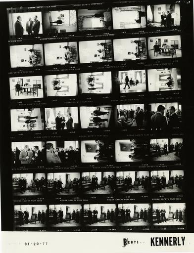 | Keywords: Ford B2871 NLGRF photo contact sheet (1977-01-20)(Gerald Ford Library).jpg White House Photographic Office WHPO is housed at the Gerald R Ford Presidential Library a branch of the National Archives and Records Administration NARA <br/><br/> This file is a 200 dpi photo contact sheet having images from roll of film B2871 of the August 9 1974 - January 20 1977 Gerald R Ford White House Photographic Office Series A0001-A9999 and B0001-B2886 photographs <br/><br/> The date on the photo contact sheet is the date the roll of film was processed not necessarily the date the photographs were taken See table below for additional details 1977-01-20 Gerald R Ford Presidential Library Image http //www fordlibrarymuseum gov/library/whphotos/B2871_NLGRF jpg B2871_NLGRF jpg from http //www fordlibrarymuseum gov/library/whphotos/19770120whpo pdf White House Photographs January 20 1977 of the http //www fordlibrarymuseum gov/Library/whphotos/whpo asp White House Photographic Collection page White House Photographic Office WHPO <br/> Creator David Hume Kennerly PD-USGov Institution Institution Gerald R Ford Presidential Library Table wikitable sortable + Photo contact sheet B2871 U S President Ford Administration Gerald R Ford Library Frame s Tone Subject proper Subject generic Names Geographic Location Photographer Date - 2 BW Saying Farewell Prior to Final Departure From White House -Transition from White House standing talking GRF Two White House Ushers Second Floor - Center Hall Kennerly 1977-01-20 - 3 BW Prior to Farewell Breakfast for Senior Administration Officials walking into Center Hall back to camera GRF Second Floor - West Sitting Room Kennerly 1977-01-20 - 4 BW Prior to Farewell Breakfast for Senior Administration Officials standing looking out window GRF Second Floor - President's Private Office Kennerly 1977-01-20 - 5 BW Prior to Farewell Breakfast for Senior Administration Officials seated at desk writing; back to camera GRF Second Floor - President's Private Office Kennerly 1977-01-20 - 6 BW Prior to Farewell Breakfast for Senior Administration Officials greeting handshaking GRF Rockefeller Second Floor - Family Dining Room Kennerly 1977-01-20 - 7-17 BW Prior to Farewell Breakfast for Senior Administration Officials seated around small table talking eating; Butler in some frames serving clearing; various angles and distances GRF Rockefeller; White House Butler Second Floor - Family Dining Room Kennerly 1977-01-20 - 18 BW Prior to Farewell Breakfast for Senior Administration Officials standing; GRF handing document to Usher GRF Rockefeller; White House Usher Second Floor - Family Dining Room Kennerly 1977-01-20 - 19 BW Prior to Farewell Breakfast for Senior Administration Officials walking talking; stepping through entrance from West Sitting Room GRF Rockefeller Second Floor - Center Hall Kennerly 1977-01-20 - 20 BW Farewell Breakfast for Senior Administration Officials handshaking; Buchen seated offering both hands; Hyland standing nearby GRF Buchen; Hyland State Dining Room Kennerly 1977-01-20 - 21 BW Farewell Breakfast for Senior Administration Officials standing talking; close up; O'Donnell in profile O'Donnell Rockefeller State Dining Room Kennerly 1977-01-20 - 22 BW Farewell Breakfast for Senior Administration Officials standing talking close up Roderick Hills Zarb State Dining Room Kennerly 1977-01-20 - 23 BW Farewell Breakfast for Senior Administration Officials GRF and Kleppe handshaking Kleppe holding cup and saucer; others standing nearby GRF Kleppe; Zarb Others State Dining Room Kennerly 1977-01-20 - 24-25 BW Farewell Breakfast for Senior Administration Officials standing talking; O'Donnell in 2nd frame only; others standing in background GRF Dent Richardson; O'Donnell Others State Dining Room Kennerly 1977-01-20 - 26-36 BW Farewell Breakfast for Senior Administration Officials GRF and NAR standing away from group; others standing on right of frames; applauding in some frames; various angles and distances; only GRF and NAR in every frame GRF Rockefeller Dent Train Baroody Cannon Henry Nancy Kissinger Coleman Cheney Kleppe Usery Hyland Rumsfeld Calhoun Others State Dining Room Kennerly 1977-01-20 Gerald R Ford Presidential Library and Museum-cooperation PD-USGov Contact sheets by the Ford White House January 1977 Photographs by David Hume Kennerly from 1977 |