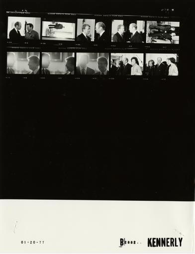 Keywords: Ford B2882 NLGRF photo contact sheet (1977-01-20)(Gerald Ford Library).jpg White House Photographic Office WHPO is housed at the Gerald R Ford Presidential Library a branch of the National Archives and Records Administration NARA <br/><br/> This file is a 200 dpi photo contact sheet having images from roll of film B2882 of the August 9 1974 - January 20 1977 Gerald R Ford White House Photographic Office Series A0001-A9999 and B0001-B2886 photographs <br/><br/> The date on the photo contact sheet is the date the roll of film was processed not necessarily the date the photographs were taken See table below for additional details 1977-01-20 Gerald R Ford Presidential Library Image http //www fordlibrarymuseum gov/library/whphotos/B2882_NLGRF jpg B2882_NLGRF jpg from http //www fordlibrarymuseum gov/library/whphotos/19770120whpo pdf White House Photographs January 20 1977 of the http //www fordlibrarymuseum gov/Library/whphotos/whpo asp White House Photographic Collection page White House Photographic Office WHPO <br/> Creator David Hume Kennerly PD-USGov Institution Institution Gerald R Ford Presidential Library Table wikitable sortable + Photo contact sheet B2882 U S President Ford Administration Gerald R Ford Library Frame s Tone Subject proper Subject generic Names Geographic Location Photographer Date - 3 BW Saying Farewell Prior to Final Departure From White House -Transition from White House talking handshaking GRF Unidentified Man Archives staff or White House staff Second Floor - Center Hall Kennerly 1977-01-20 - 4 BW Prior to Final Departure From White House walking; open garment bag with presidential seal and plant plus others items on floor GRF Second Floor - President's Private Office Kennerly 1977-01-20 - 5-6 BW Reception for Jimmy and Rosalynn Carter and Walter and Joan Mondale standing talking; head and shoulder portraits GRF Jimmy Carter Blue Room Kennerly 1977-01-20 - 7 BW Reception for Jimmy and Rosalynn Carter and Walter and Joan Mondale standing talking; long shot GRF Jimmy Carter Blue Room Kennerly 1977-01-20 - 8-10 BW Reception for Jimmy and Rosalynn Carter and Walter and Joan Mondale standing talking; head and shoulder portraits; backlit GRF Jimmy Carter Blue Room Kennerly 1977-01-20 - 11-12 BW Prior to Final Departure From White House and the Inauguration of Jimmy Carter as the 39th President of the United States standing posing smiling; taken from left of group GRF Betty Ford Jimmy Carter Rosalynn Carter North Portico Kennerly 1977-01-20 Gerald R Ford Presidential Library and Museum-cooperation PD-USGov Contact sheets by the Ford White House January 1977 Photographs by David Hume Kennerly from 1977 |