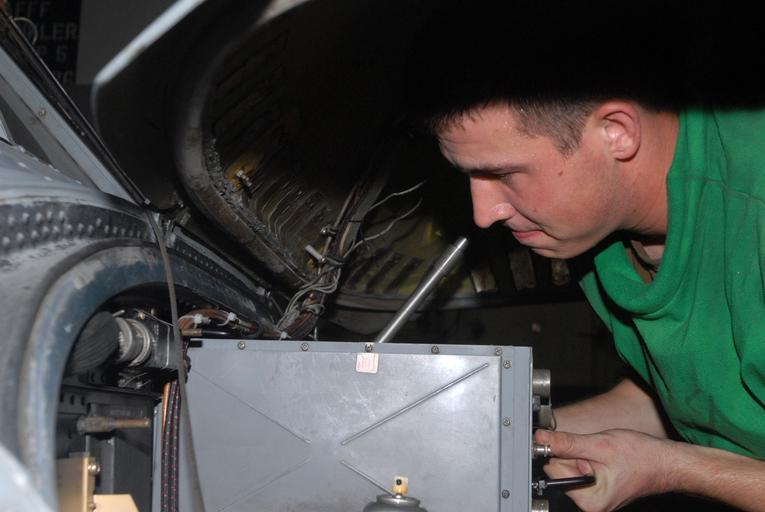 | Keywords: Foreign Object Damage search aboard USS Ronald Reagan DVIDS121723.jpg en Aviation electronics technician Petty Officer 2nd Class James Wells 26-year-old native of Tulsa Okla reinstalls a tactical data processor into a SH-60F Seahawk assigned to the Black Knights of Helicopter Anti-Submarine Squadron 4 in the hangar bay of the Nimitz-class aircraft carrier USS Ronald Reagan The Seahawk is a twin-engine helicopter used for anti-submarine warfare search and rescue drug interdiction anti-ship warfare cargo lift and special operations Ronald Reagan is currently deployed to the 5th Fleet/NAVCENT area of responsibility Operations in the NAVCENT area of operations are focused on reassuring regional partners of the United States' commitment to security which promotes stability and global prosperity 2008-10-12 Petty Officer 3rd Class Torrey Lee https //www dvidshub net/image/121723 081012-N-+++++-007 2008-10-13 01 08 GULF OF OMAN USCENTCOM AT SEA PD-USGov-Military-Navy USS Ronald Reagan CVN-76 Images from DoD uploaded by Fæ |
