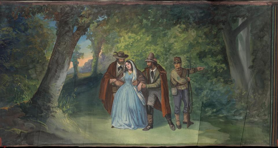 | Keywords: Forest. Anita Dying WDL2953.png Artwork ru Исто ия Джон Джеймс 1827-1900 fr Story John James 1827-1900 en Story John James 1827-1900 zh 故事 约翰·詹姆斯 1827-1900 pt Story John James 1827-1900 ar ستوري جون جيمس 1827-1900 es Story John James 1827-1900 ru Лес Анита Даинг fr Forêt Anita mourante en Forest Anita Dying zh 森林 阿妮塔临终关 pt Floresta Anita Dying ar الغابة أنيتا وهي تموت ru Этот исунок с изоб ажением итальянских пат иотов пе иода войн за итальянскую независимость является частью движущейся пано амы из нескольких сцен высотой более 1 2 мет а и длиной 110 мет ов Такие ог омные ка тины были популя ным азвлечением в XIX веке Свиток с пано амой азве тывался постепенно по ме е азвития сюжета деклами уемого ассказчиком Общая тематика этой пано амы описание жизни и подвигов Джузеппе Га ибальди итальянского бо ца за свободу Эта абота п иписывается Джону Джеймсу Сто и 1827-1900 гг художнику из оттингема Великоб итания однако судя по азному качеству исунков на азво ачивающейся пано аме не исключено что в создании полотна участвовало несколько художников Исследователи живописи полагают что Сто и никогда не бывал в Италии; он п осто видел изоб ажения и исунки этой ст аны в газетах и восп оизводил их Эта пано ама входит в Военную коллекцию Анны С К Б аун х анящейся в Библиотеке Б ауновского униве ситета самой выдающейся аме иканской коллекции посвященной исто ии и иконог афии военнослужащих и воинской службы и одной из к упнейших ми овых коллекций посвященных изучению военных и военно-мо ских мунди ов <br>Га ибальди Анита 1821 -1849 гг ; Га ибальди Джузеппе 1807-1882 гг ; Италия -- Исто ия -- 1815-1870 гг ; Солдаты fr Cette peinture qui dépeint les patriotes italiens pendant les guerres de l'indépendance italienne est extraite d'une scène multiple un panorama mobile de plus d'1 2 mètre de haut sur 110 mètres de long Les peintures géantes comme celle-ci était une forme populaire de divertissement au 19ème siècle La bobine du panorama était dévidée lentement au fur et à mesure que le narrateur décrivait l'action Ce panorama raconte dans sa totalité la vie et les exploits de Giuseppe Garibaldi le combattant italien de la liberté L'œuvre est attribuée à John James Story 1827-1900 un artiste de Nottingham Angleterre mais la qualité distincte du travail d'une partie du panorama à une autre suggère qu'il ait pu être l'œuvre de plusieurs artistes Les historiens d'art font l'hypothèse que Story ne se soit jamais rendu en Italie mais ait vu des images du pays montrées dans les journaux et qu'il les ait reproduites Le panorama fait partie de la collection militaire Anne S K Brown à la Bibliothèque de l'Université Brown la plus importante collection américaine consacrée à l'histoire et à l'iconographie des soldats et à la vie militaire et l'une des plus vastes collections au monde dédiée à l'étude des uniformes militaires et marins <br>Garibaldi Anita 1821-1849; Garibaldi Giuseppe 1807-1882; Italie -- Histoire -- 1815-1870; Soldats en This painting depicting Italian patriots during the wars of Italian independence is excerpted from a multi-scene moving panorama that is more than 1 2 meters tall and 110 meters long Giant paintings such as these were a popular form of entertainment in the 19th century The panorama scroll would be unrolled slowly as a narrator described the action In its entirety this panorama chronicles the life and exploits of Giuseppe Garibaldi the Italian freedom fighter The work is attributed to John James Story 1827-1900 an artist from Nottingham England but the differing quality of the work from one part of the panorama to another suggests that it may have been the work of several artists Art historians speculate that Story had never been to Italy but had seen images from the country depicted in newspapers and reproduced them The panorama is part of the Anne S K Brown Military Collection at the Brown University Library the foremost American collection devoted to the history and iconography of soldiers and soldiering and one of the world s largest collections devoted to the study of military and naval uniforms <br>Garibaldi Anita 1821 -1849; Garibaldi Giuseppe 1807-1882; Italy -- History -- 1815-1870; Soldiers zh 这幅描绘意大利独立战争 间意大利爱国志士的画 摘自 幅多 景的 移动 全景图,该全景图高 1 2 米多,全长 110 米 此类巨幅画 是 19 世纪流行的 种娱乐表现形式 随 叙述 对事件的描述,全景画卷缓缓 打 这幅全景图的全部内容都是对意大利自由斗士 塞佩·加里波第 生中重要事件和英勇行为的描绘 该画 被认为是英国诺丁汉画家约翰·詹姆斯·斯托里(1827-1900 年)的 品,但该全景图不同部分的画 质量 不同,表明它可能是由多名画家共同创 的 艺 史学家推测,斯托里没 去过意大利,但 报纸上 到过 自该国的图像, 画 则是对这些图像的复制 