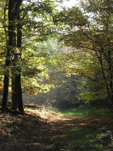 Keywords: forest away forest path trees leaves green deciduous forest
