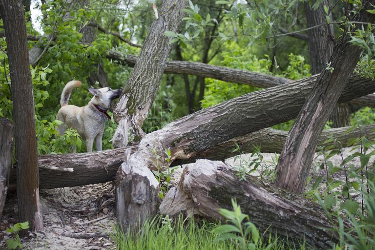 Keywords: forest beavers dog animal tree fallen tree wood destruction horizontal outdoors