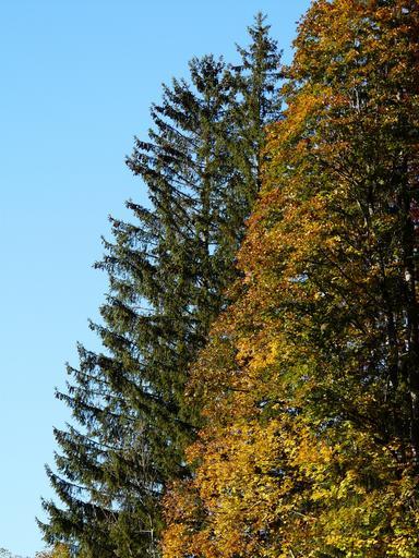 Keywords: forest coniferous forest fir forest christmas tree conifer deciduous tree mixed forest autumn fall color autumn forest autumn colours trees