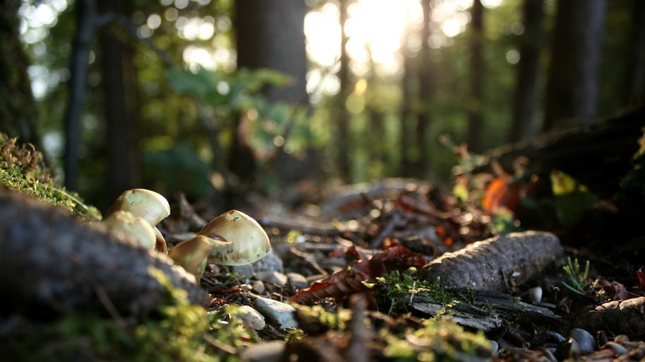 Keywords: forest floor autumn mood autumn forest mushrooms autumn colours leaves october bright back light nature