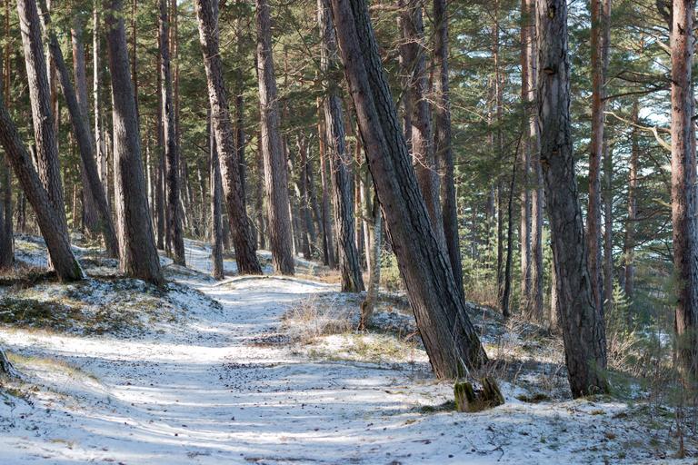 Keywords: pines conifer evergreen woods trees snow sunny spring forest jurmala latvia path road footpath trail track outdoor landscape plant tree Early spring in Jurmala forest, Latvia. Early spring in Jurmala forest, Latvia.