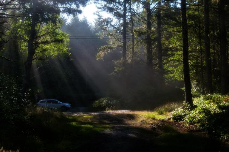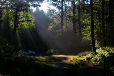 Keywords: forest sunbeams early morning sunlight sun light environment woods rays